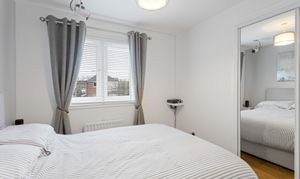 A generously sized bedroom overlooking the front of the property, offering a bright and airy atmosphere. The room is enhanced by built-in mirrored wardrobes, providing excellent storage while reflecting light to create a sense of added space. With ample room for freestanding furniture, this versatile bedroom is both practical and comfortable.