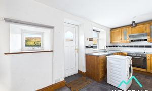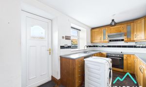 - Positioned to the rear of the property, accessed internally from the living room, and externally from the rear yard via a double glazed uPVC door with frosted pane - Two double-glazed uPVC windows with deep sills to the Northern aspect - Laminate flooring - Neutrally decorated - Range of over/under counter storage units - Laminate work surfaces - 1.5 stainless steel sink with tiled splashback - Integrated electric oven and hob with overhead extractor - Plumbing for washing machine - Space for freestanding appliances - Two ceiling light fittings - Radiator - Space for a small dining table and chairs