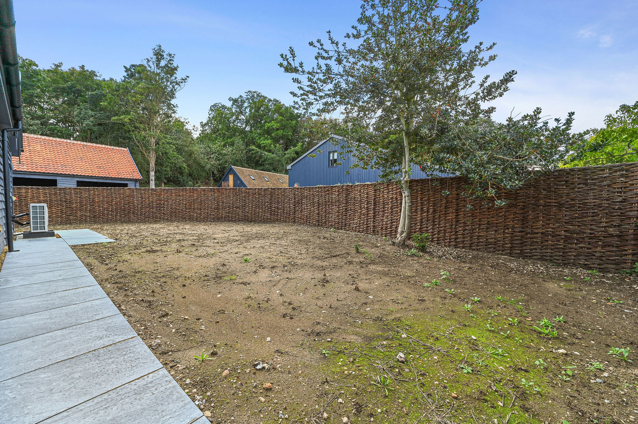 From the outset, the property makes a striking impression. The architecture is an inspired interpretation of the Suffolk rural vernacular, blending handmade clay roof tiles, weatherboarding, and authentic brickwork with striking contemporary glazed sections that flood the interiors with natural light. The exterior is enhanced by a generous wrap-around garden, creating a setting that is both private and versatile. A spacious cart-lodge with ample parking completes the picture and provides exciting potential for a home office or studio above, subject to the necessary planning consents, catering perfectly for modern lifestyles.