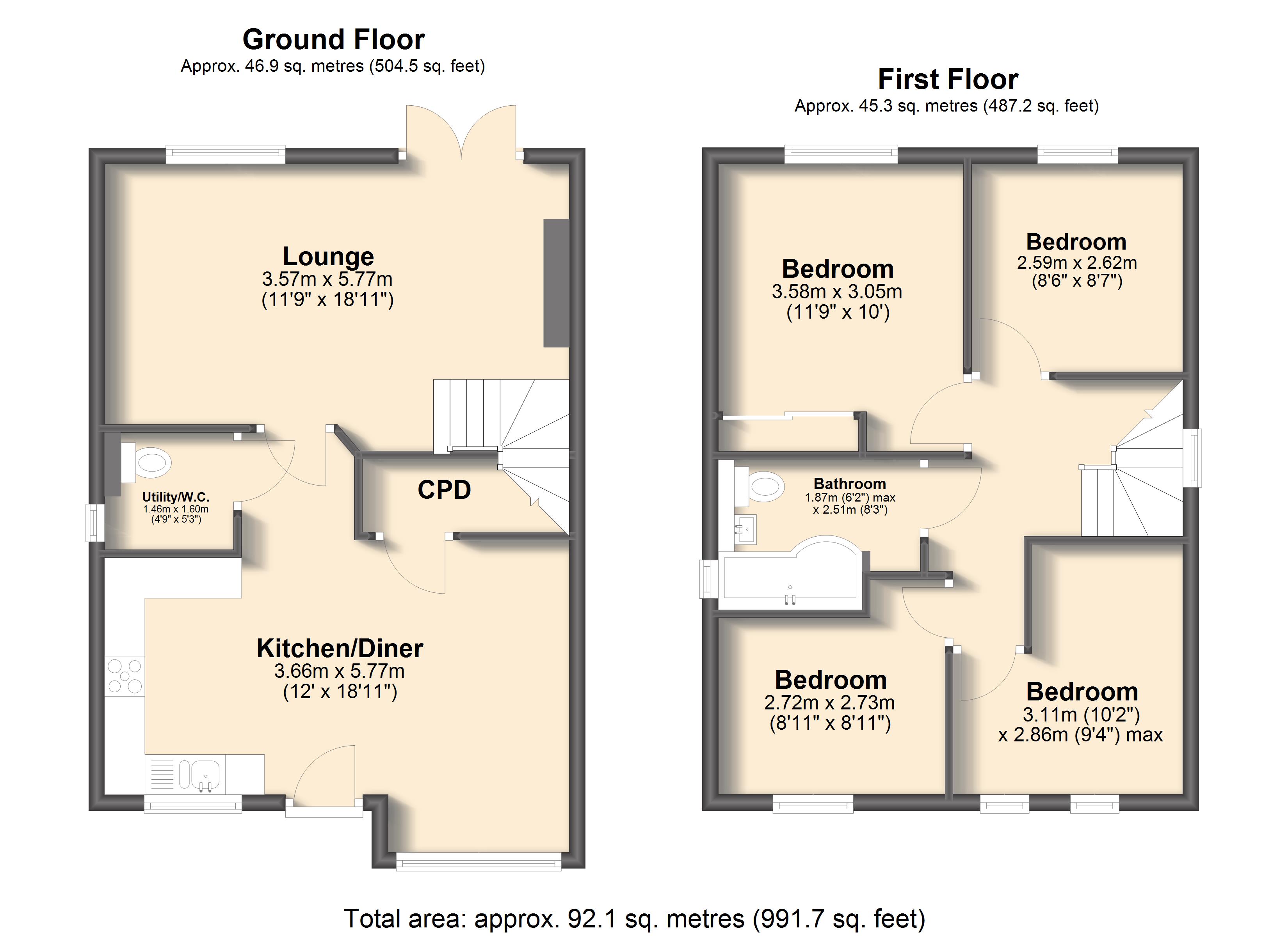Upstairs, all bedrooms are well-proportioned, including a principal bedroom with fitted wardrobes. You have a great deal of flexibility and plenty of scope to create an office for those looking to work from home. The contemporary family bathroom completes the layout and is fitted with a modern three-piece white suite including an overhead shower.