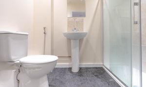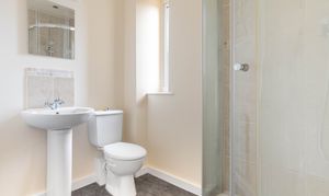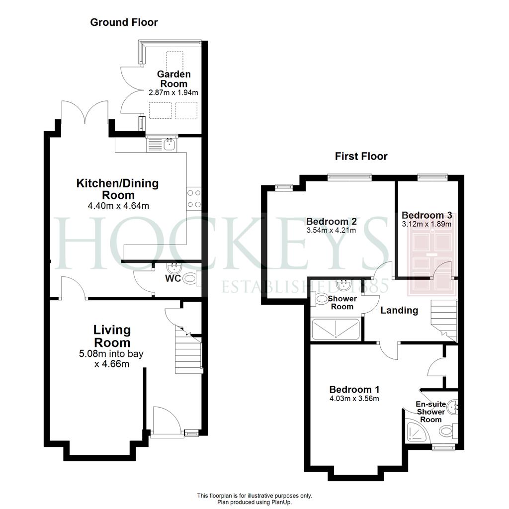 The first-floor accommodation comprises a master bedroom with an airing cupboard and ensuite shower room. Bedroom 2 is a generously sized double room with two rear windows, with Bedroom 3 a single room or study.