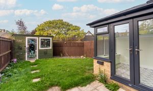 To the front of the property is a block-paved driveway providing off-road parking for two cars. A side passage-way leads to gated access to the south-facing rear garden. The garden is laid to lawn with a patio and water and electric outlets. To the rear is a timber shed with a glazed door and a window.