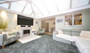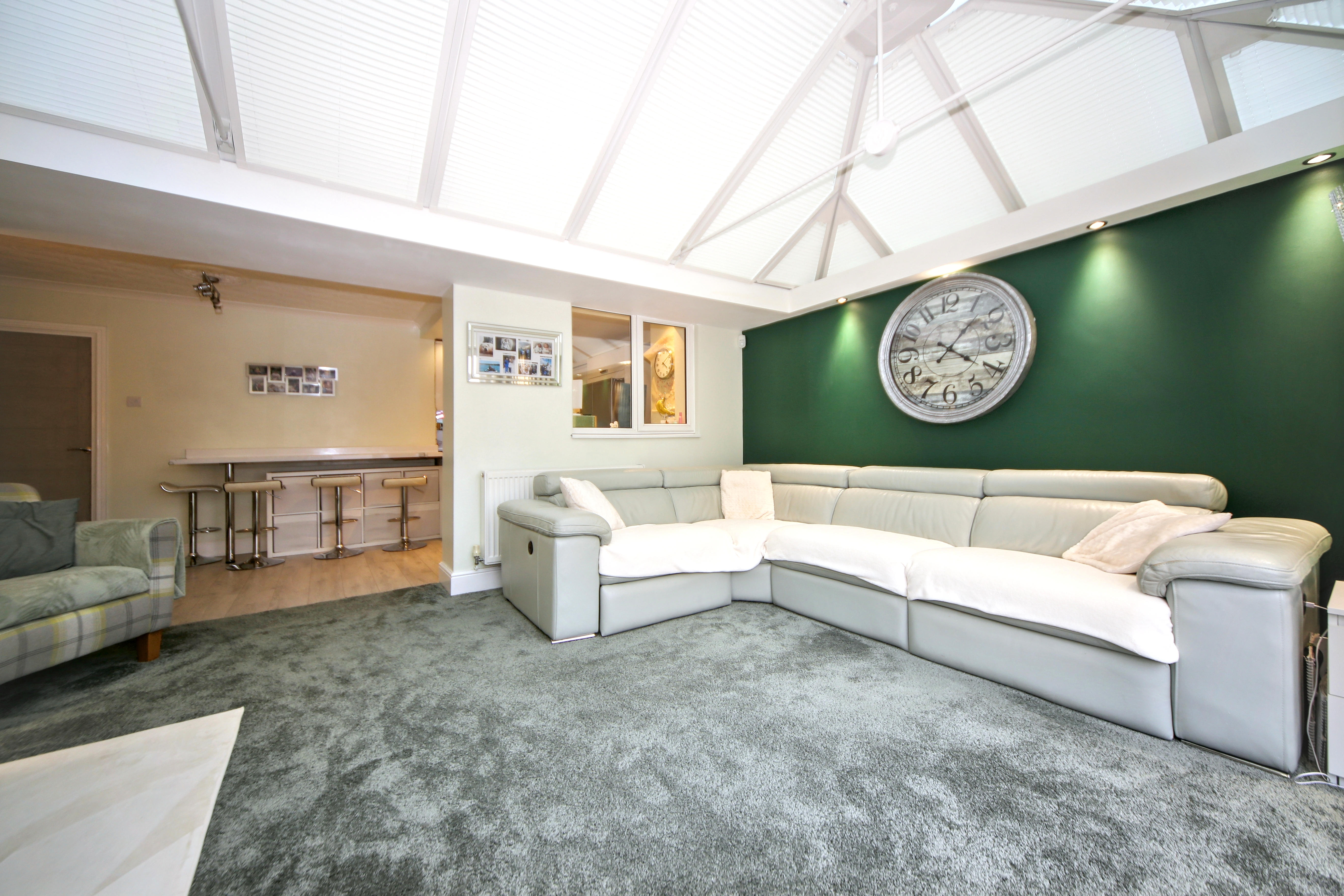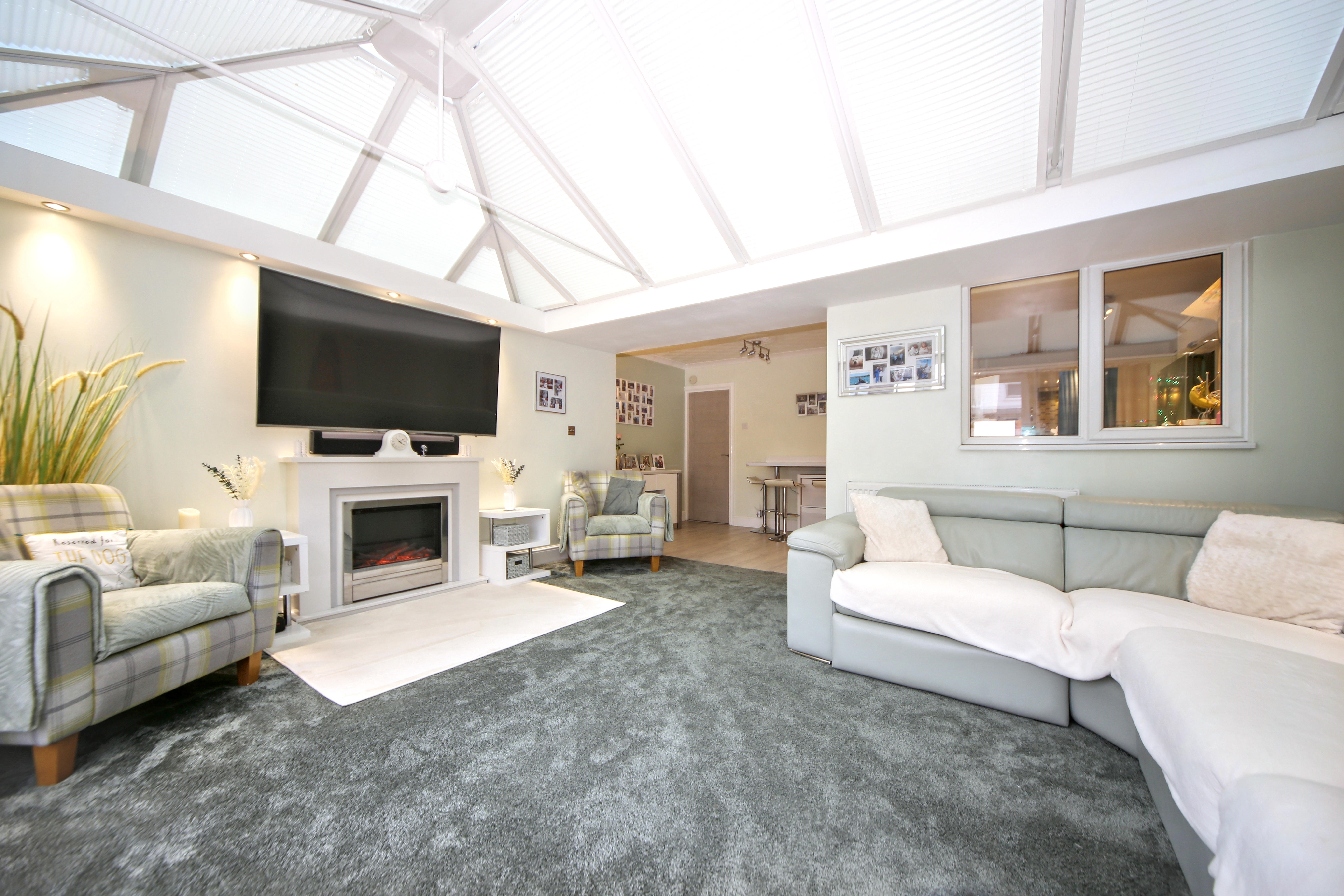 A standout feature of the home is the large conservatory, currently used as an additional living area, with sliding doors opening onto the rear garden.