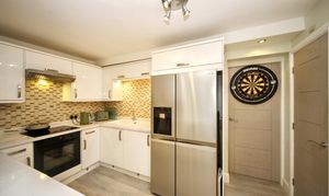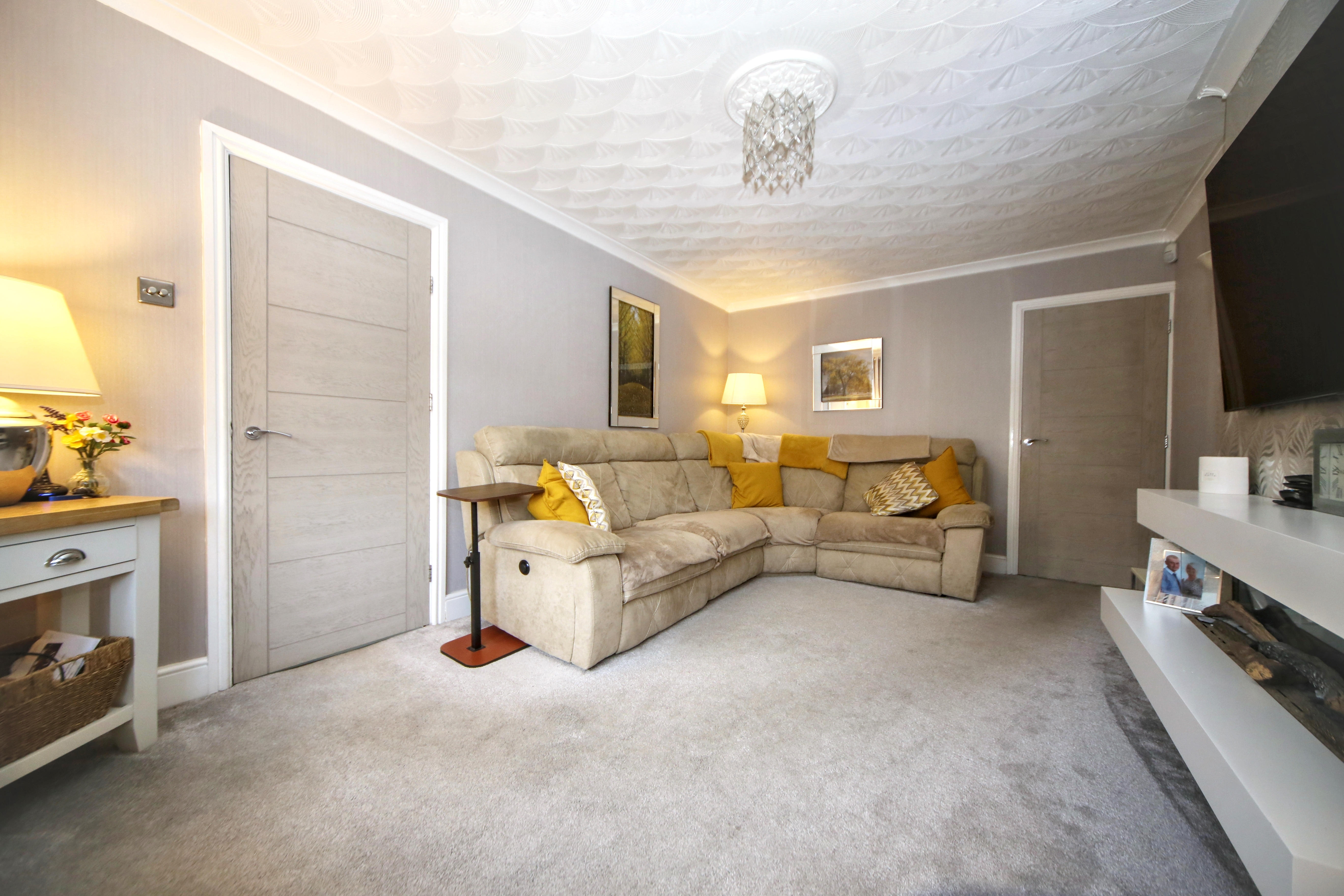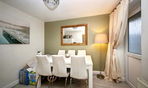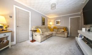 The ground floor features a comfortable lounge and a bright open plan dining kitchen designed with both practicality and entertaining in mind. The kitchen includes a breakfast bar, integrated oven and hob, built in washing machine and dishwasher. To the side of the property there is an additional family room, offering flexible space that could be used as a playroom, office or snug.