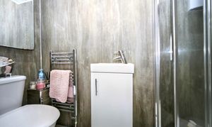 The property benefits from a driveway providing off-road parking for up to three cars and a garage with an electric door for added convenience. Upon entering the home, you are welcomed by an entrance hall leading to a modern shower room complete with WC and wash basin.