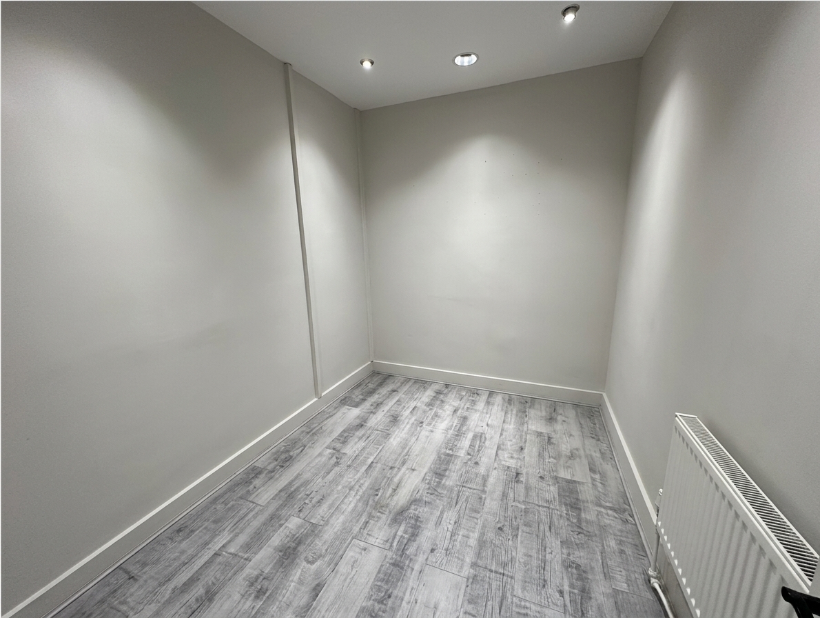 Offering approximately 64 sq m (689 sq ft) of versatile accommodation, the property comprises a front retail/reception area with a partitioned side room, a further room to the rear, kitchen, and WC. The layout lends itself well to a variety of configurations, making it suitable for retail, beauty and salon operators, or professional office use.