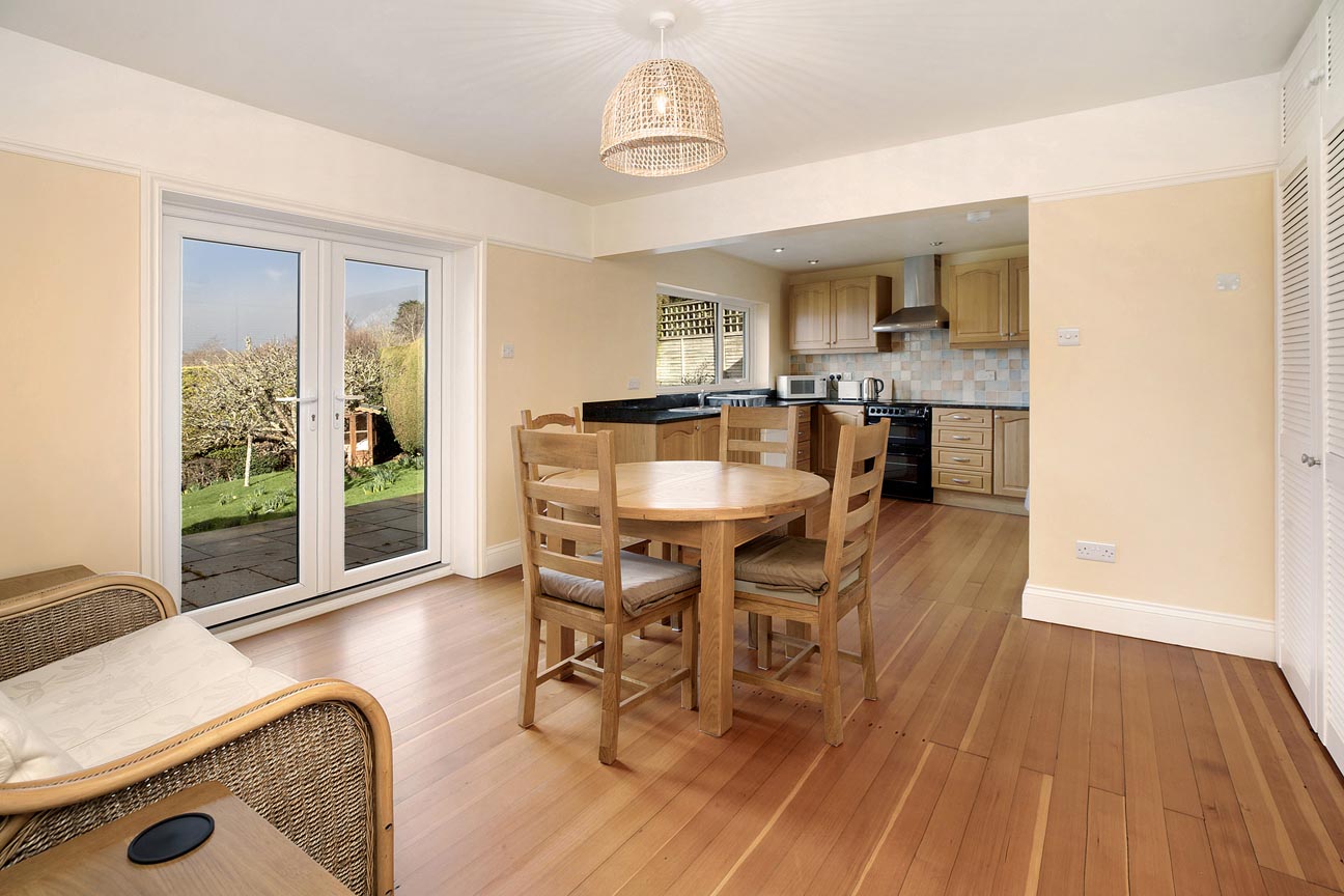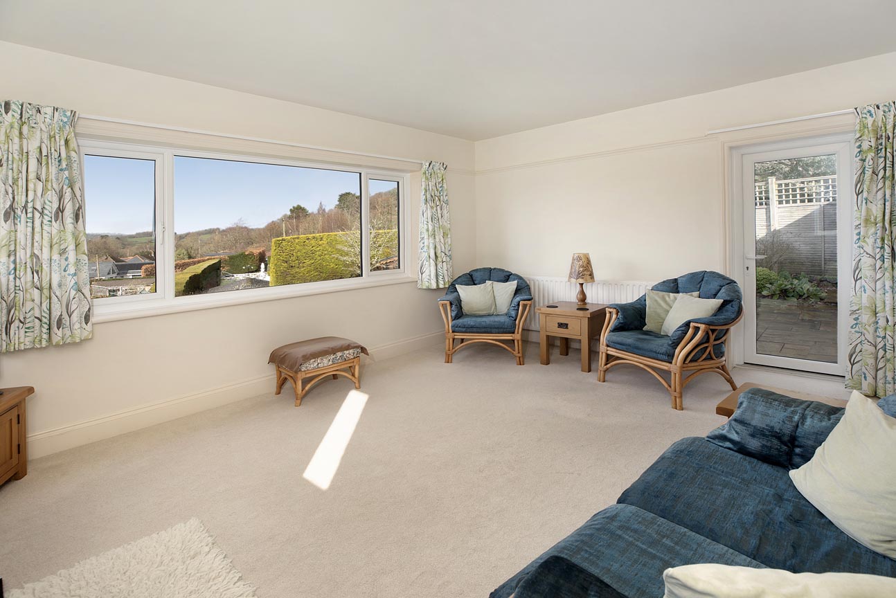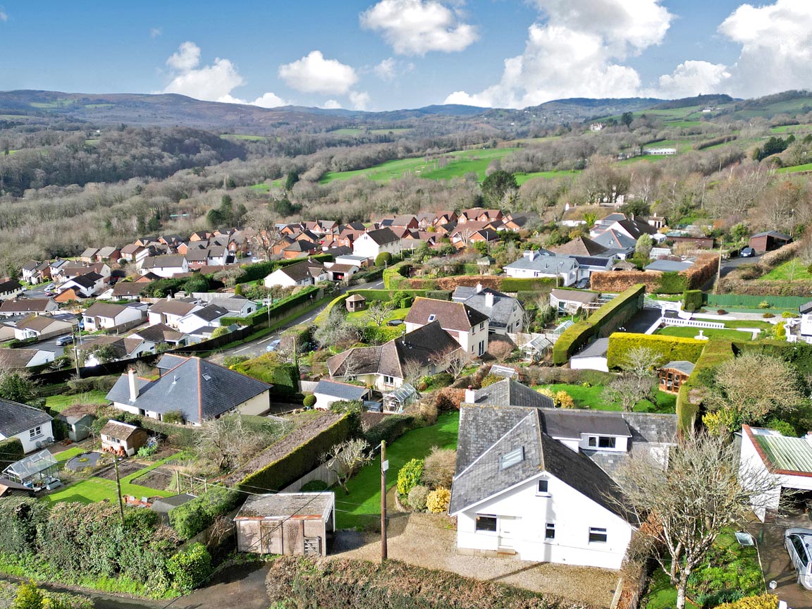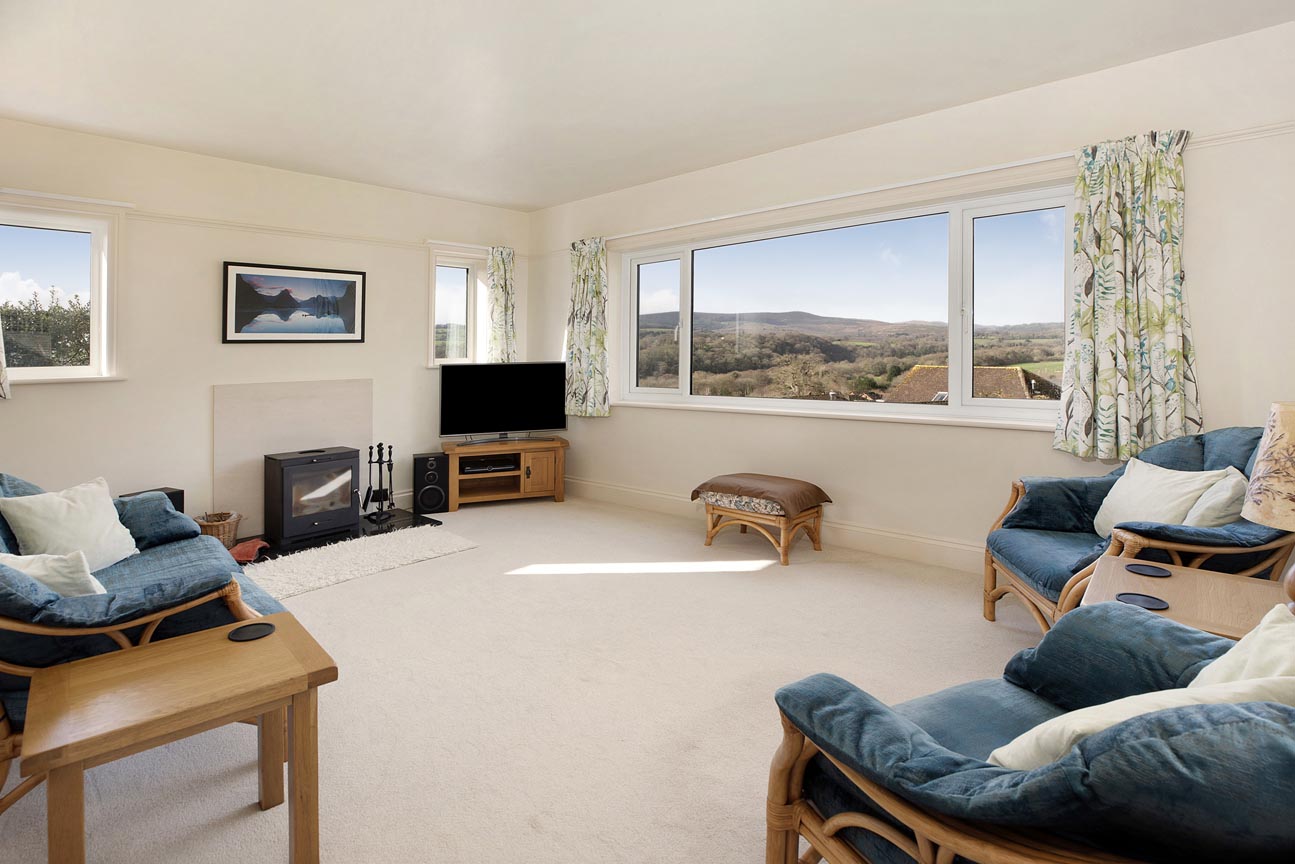 “This elevated detached chalet bungalow offers truly breath-taking panoramic countryside views from nearly every room – a rare and captivating feature in this peaceful location. The versatile, light-filled layout with cosy wood-burner lounge, sociable kitchen/breakfast room, flexible bedrooms and superb private gardens with summerhouse makes it an exceptional home.”