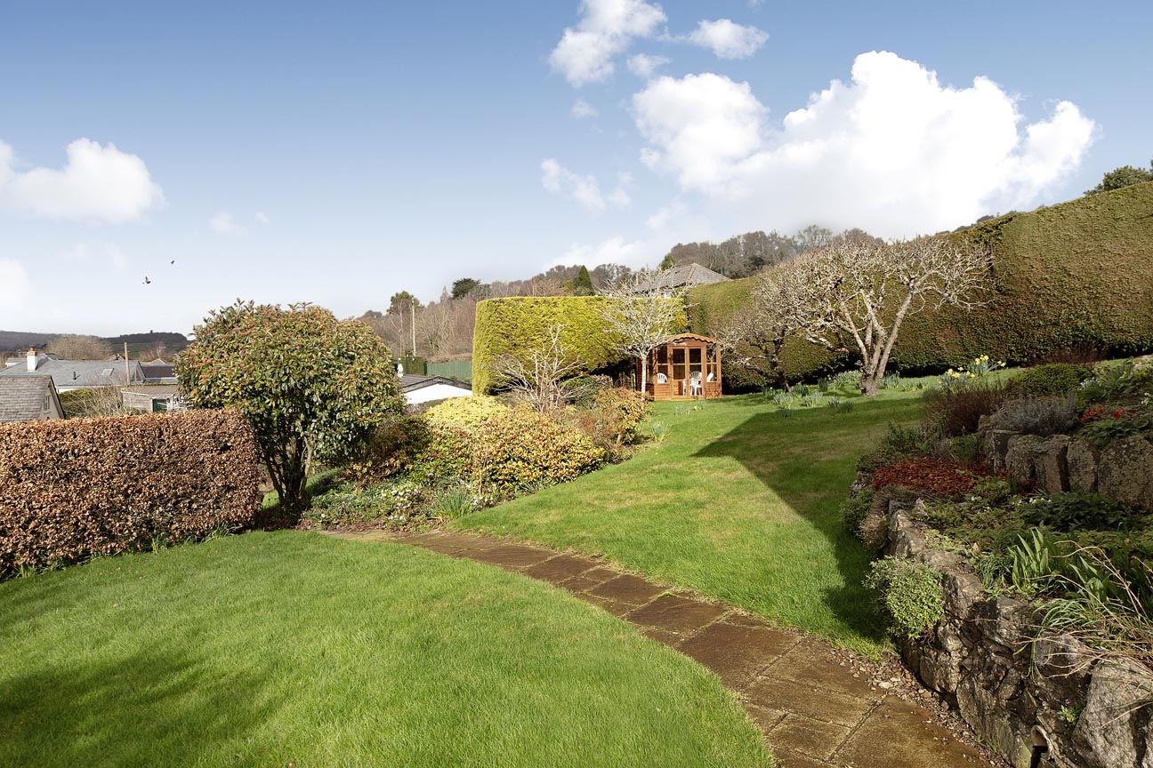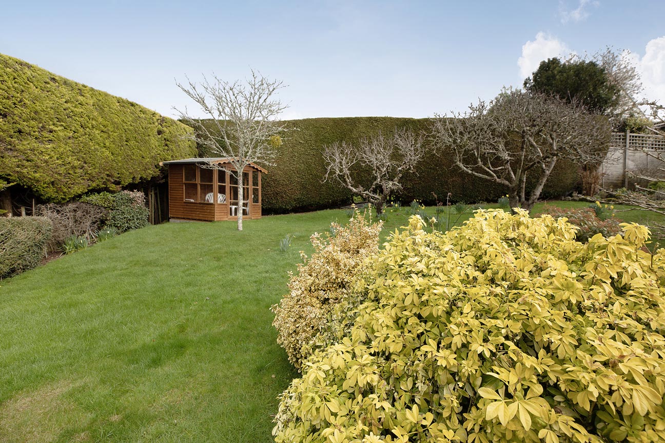 STEP OUTSIDE: Approached via a gravel driveway providing generous off-road parking, the property includes a detached single garage — perfect for secure storage, workshop use, or vehicle parking. The rear garden is a particular highlight: thoughtfully landscaped on a gently sloping site with stone paths, and steps creating distinct usable spaces. Predominantly laid to lawn for easy maintenance, it features mature hedging for excellent privacy, established shrubs, fruit trees (including a characterful apple tree), and a productive vegetable/herb garden patch. A charming timber summerhouse/garden room is perfectly positioned to take in the garden views, offering a peaceful spot for reading, hobbies, afternoon tea, or simply enjoying the tranquillity. The garden enjoys sunshine throughout much of the day with areas of dappled shade from mature planting, and the elevated position ensures those uninterrupted rural views remain a constant delight. To the front and sides, well-tended borders, hedging, and gravel areas enhance the property's kerb appeal while maintaining the peaceful, semi-rural character.