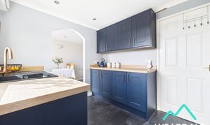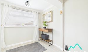 - External access from the front of the property is gained via a uPVC door with frosted panes into a well-proportioned L-shaped hallway - The hallway provides onward access to the living room at the front, the kitchen to the rear, and a straight staircase rising to the first-floor landing - uPVC window to the Northwestern aspect - Ceiling spotlights - Laminate flooring - Neutrally decorated - Radiator with decorative cover - Under stairs storage cupboard
