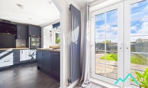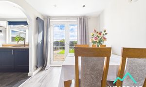 - The living room is positioned to the front of the property and accessed from the hallway, whilst being open plan with the dining area to the rear, which provides onward access to the kitchen and uPVC patio doors opening to the rear garden - uPVC window to the Northwestern aspect - Electric fire set on marble hearth and surround with wooden mantle - Carpeted - Neutrally decorated - Wall mounted light fittings with additional ceiling spotlights over the dining area - The dining area benefits from laminate flooring and provides ample space for dining furniture - Column radiator to the front of the living area whilst a modern vertical radiator is positioned to the rear