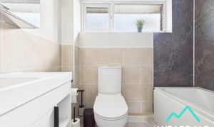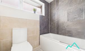- Positioned to the rear of the property and accessed from the landing - The bathroom was newly installed in 2025 - Laminate flooring - Half tiled walls - Panel bath with fully clad enclosure with overhead mains fed shower plus rainfall head and glass screen - Hand wash basin set on vanity unit with integrated storage below - WC - Vertical heated towel rail - Ceiling spotlights - High-level frosted uPVC window to the Southeastern aspect