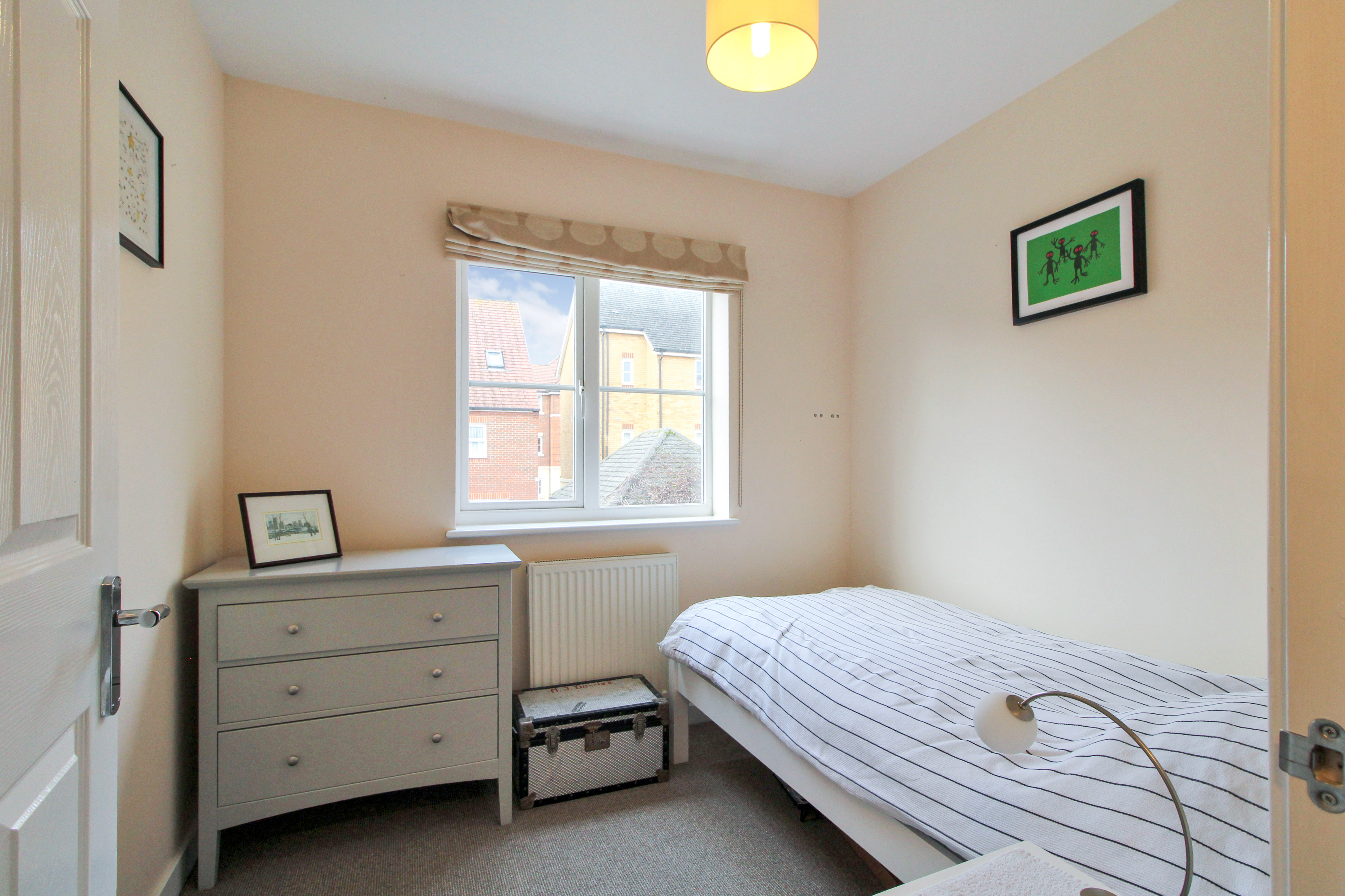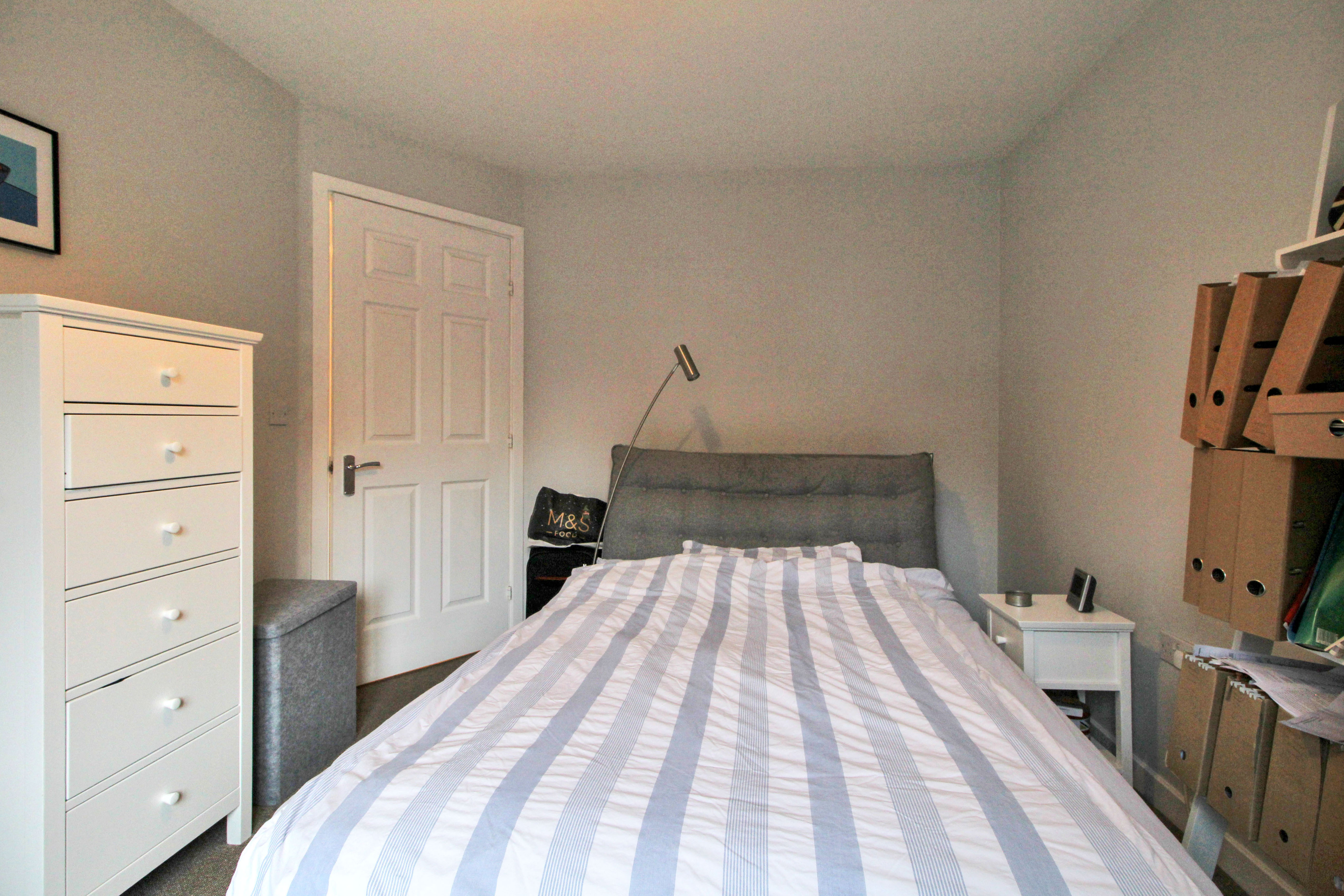 A bright and well presented bedroom, ideal as a single room or home office. The room features a window providing natural light, with a radiator positioned beneath. There is space for a bed and additional furniture, and the room is finished in neutral décor, making it a versatile and comfortable space.