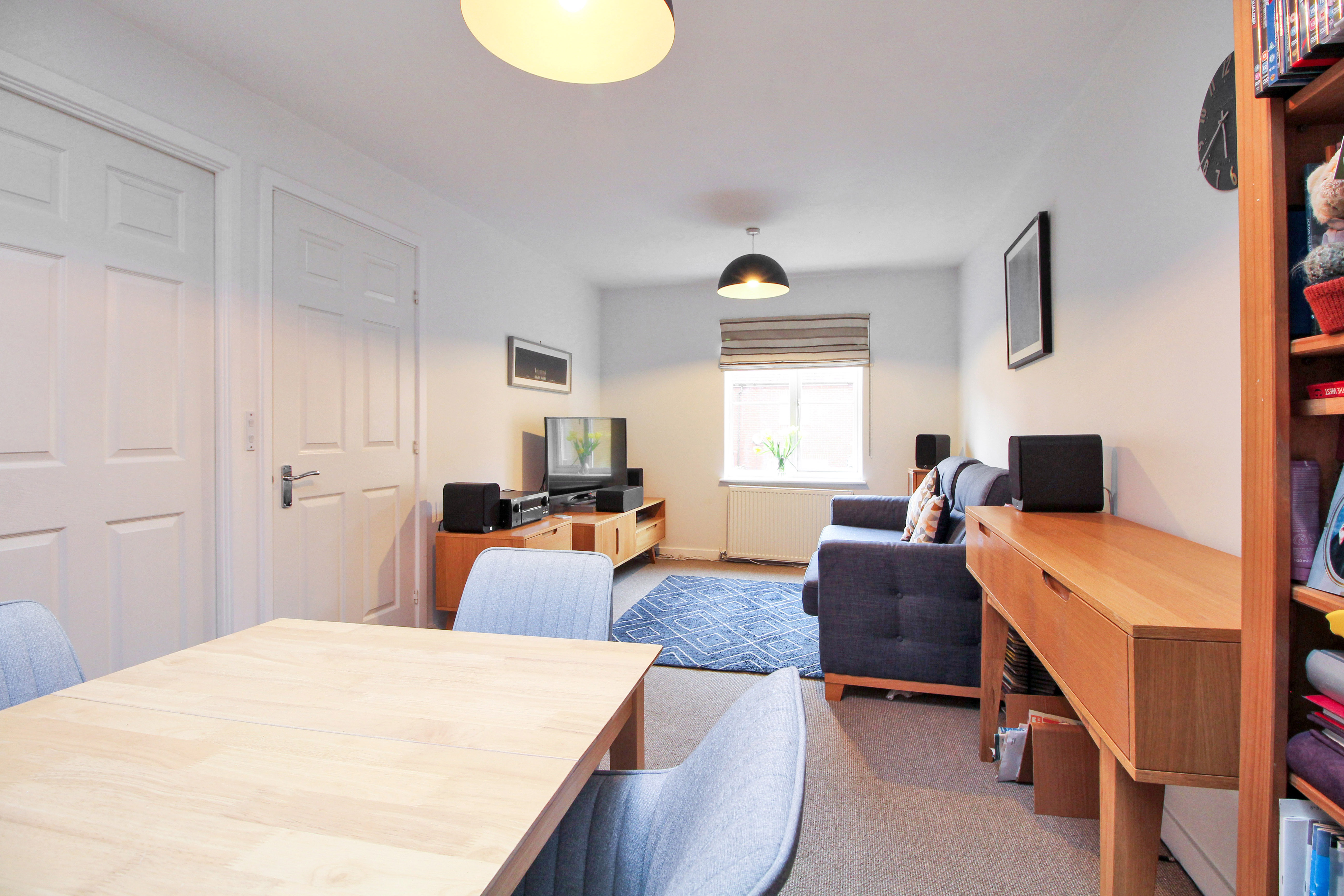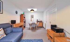 A well-proportioned open plan living space clearly defined into lounge and dining areas. The lounge area provides a comfortable setting for seating and media furniture, centred around a window to the front that allows for good natural light, with a radiator positioned beneath. The dining area sits to the rear of the room, offering ample space for a dining table and chairs, making it ideal for everyday meals and entertaining. This section benefits from a roof light which enhances the sense of space and brightness. The room is finished in neutral décor throughout, creating a versatile and cohesive living environment.