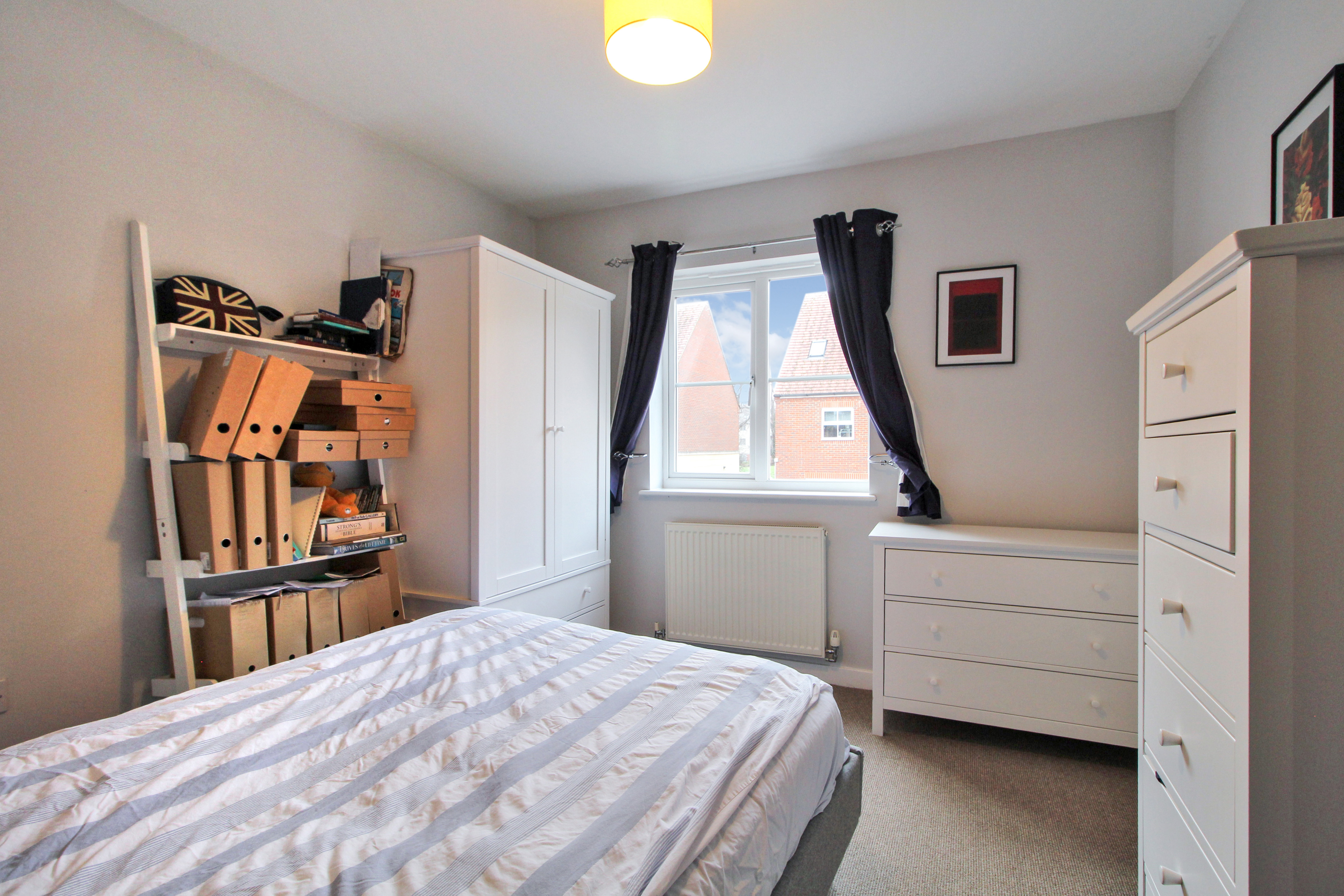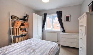 A well-proportioned double bedroom finished in neutral décor, offering ample space for bedroom furniture. The room benefits from a window providing natural light, with a radiator positioned beneath. There is good provision for storage, with space for wardrobes and drawers, making this a comfortable and practical bedroom.