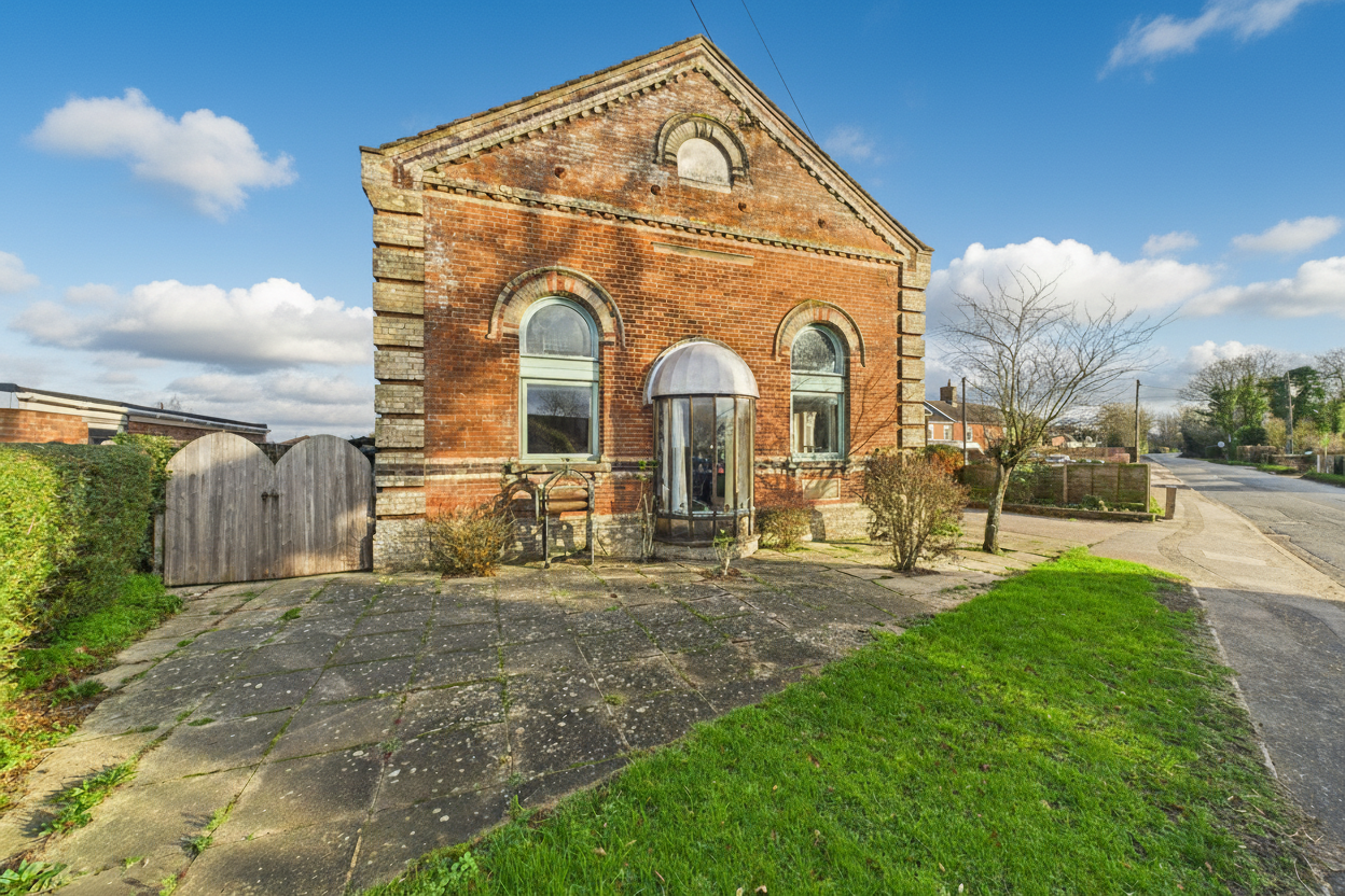 GUIDE PRICE £500,000 - £550,000. We are delighted to present this exceptional three-bedroom detached home, a beautifully converted former chapel that perfectly blends original character with contemporary living. This unique property boasts three generous double bedrooms, a dedicated study or office, and both an en-suite and family bathroom. Striking architectural features abound, with soaring high ceilings and elegant arched windows flooding the impressive 27-foot lounge and dining area with natural light. The kitchen is well-appointed with quality appliances, while thoughtful design touches ensure comfort and style throughout. Offered chain free, this property enjoys stunning field views and ample off-road parking, including a spacious single garage and a private driveway.