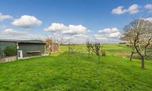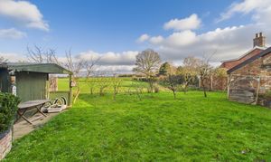 The rear garden is mainly laid to lawn with stunning views over open fields, various fruit trees creating a mini Orchard, raised flower beds, covered porch with pathway leading to the side garden offering two timber sheds, covered storage, oil tank and double gates to the front garden.