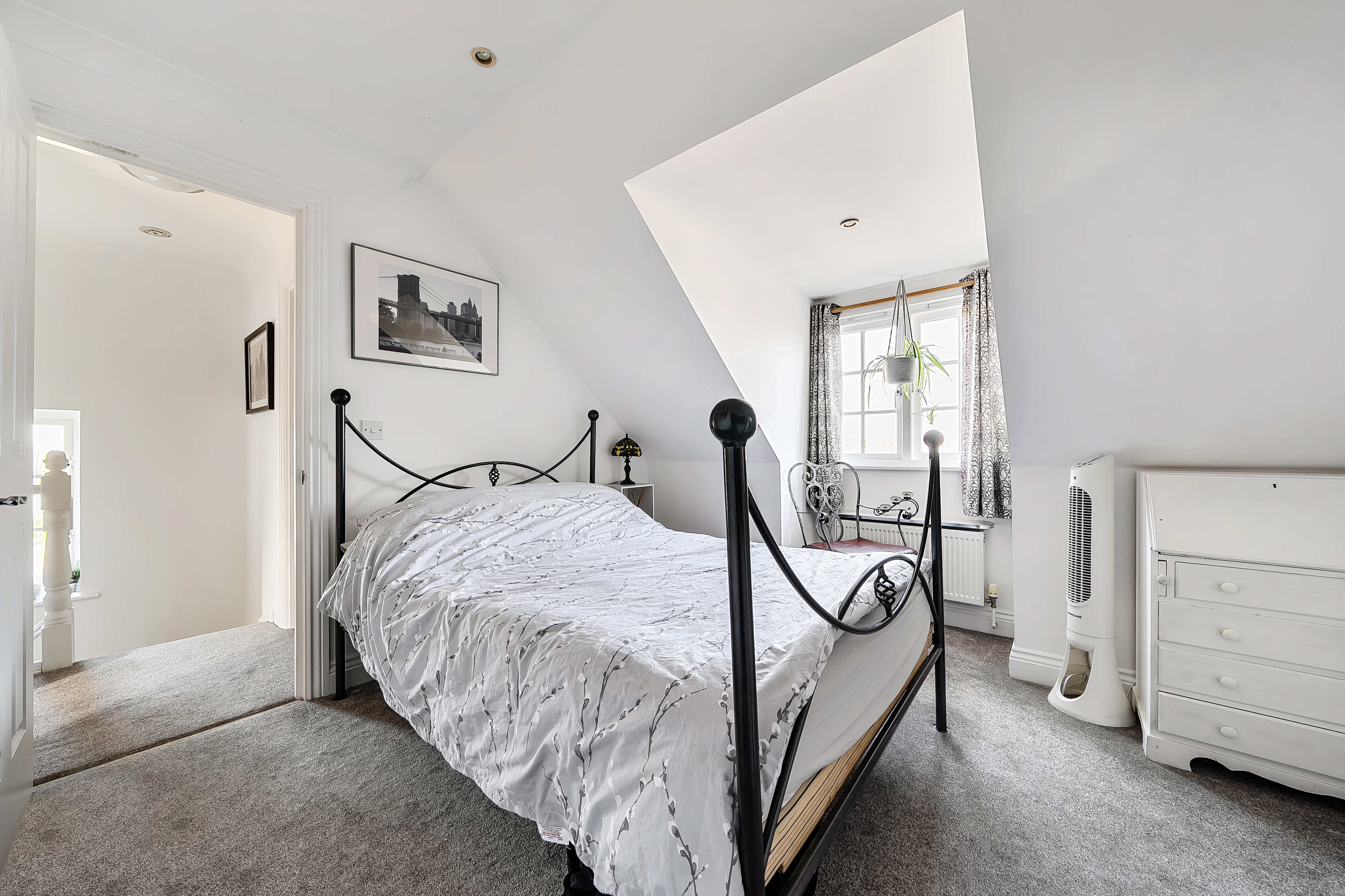 Carpeted, double glazed window to rear with views, radiator.