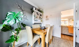 Accessed via UPVC double glazed door. Inset doormat, laminate flooring, understairs cupboard with consumer unit and shelving, carpeted stairs rising to first floor. Doors to lounge, downstairs WC and kitchen/diner.