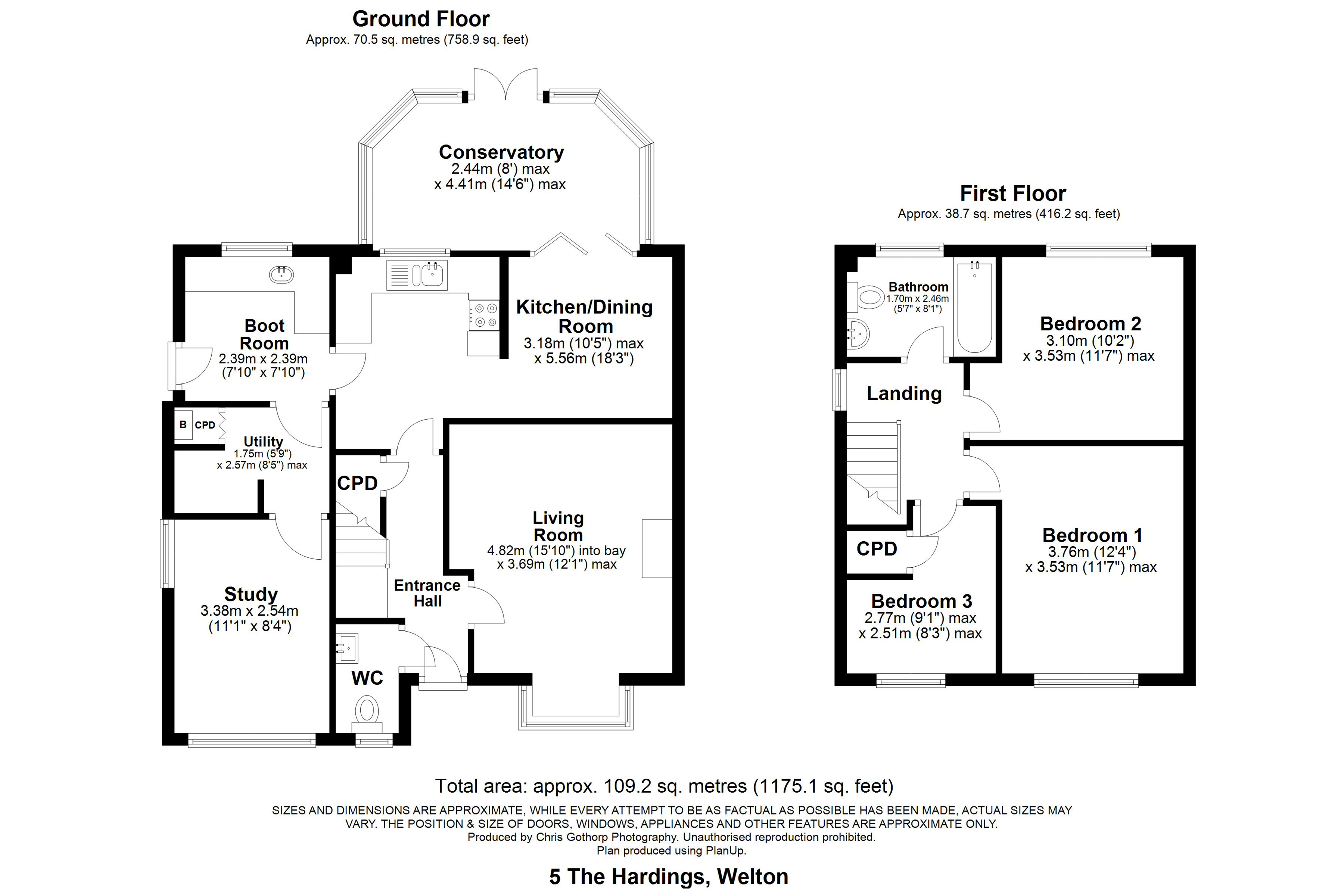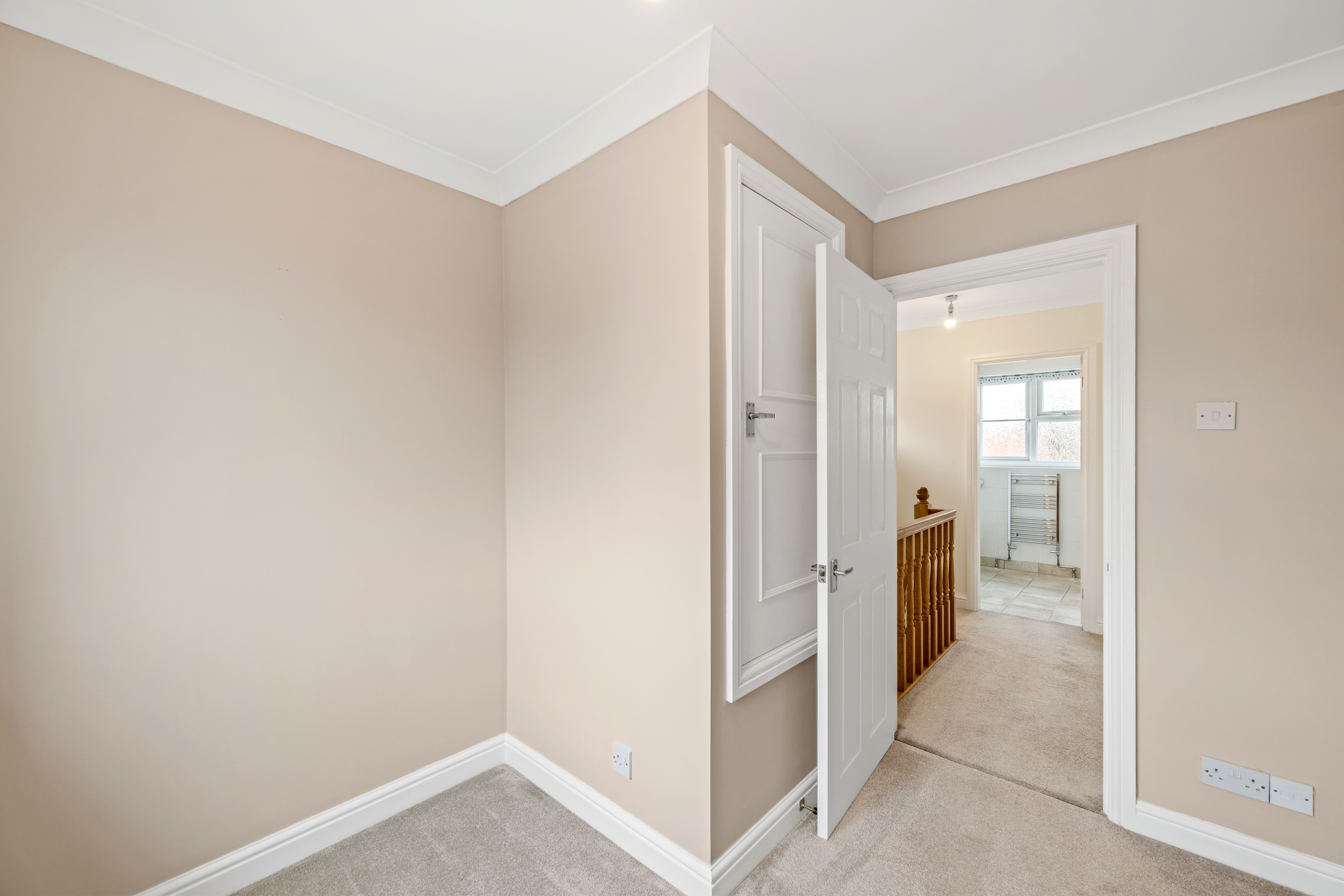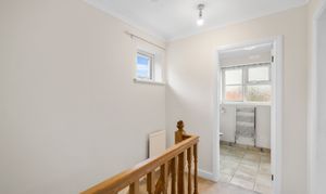 Additional ground floor highlights include a separate utility room, a practical boot room with side access, and a versatile study converted from the original garage (with all paperwork in place). Upstairs, the landing provides access to three well-proportioned bedrooms, including a master, a second double, and a third bedroom with an over-stair storage cupboard. The family bathroom is fitted with a three-piece suite, including a bath with shower overhead.