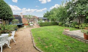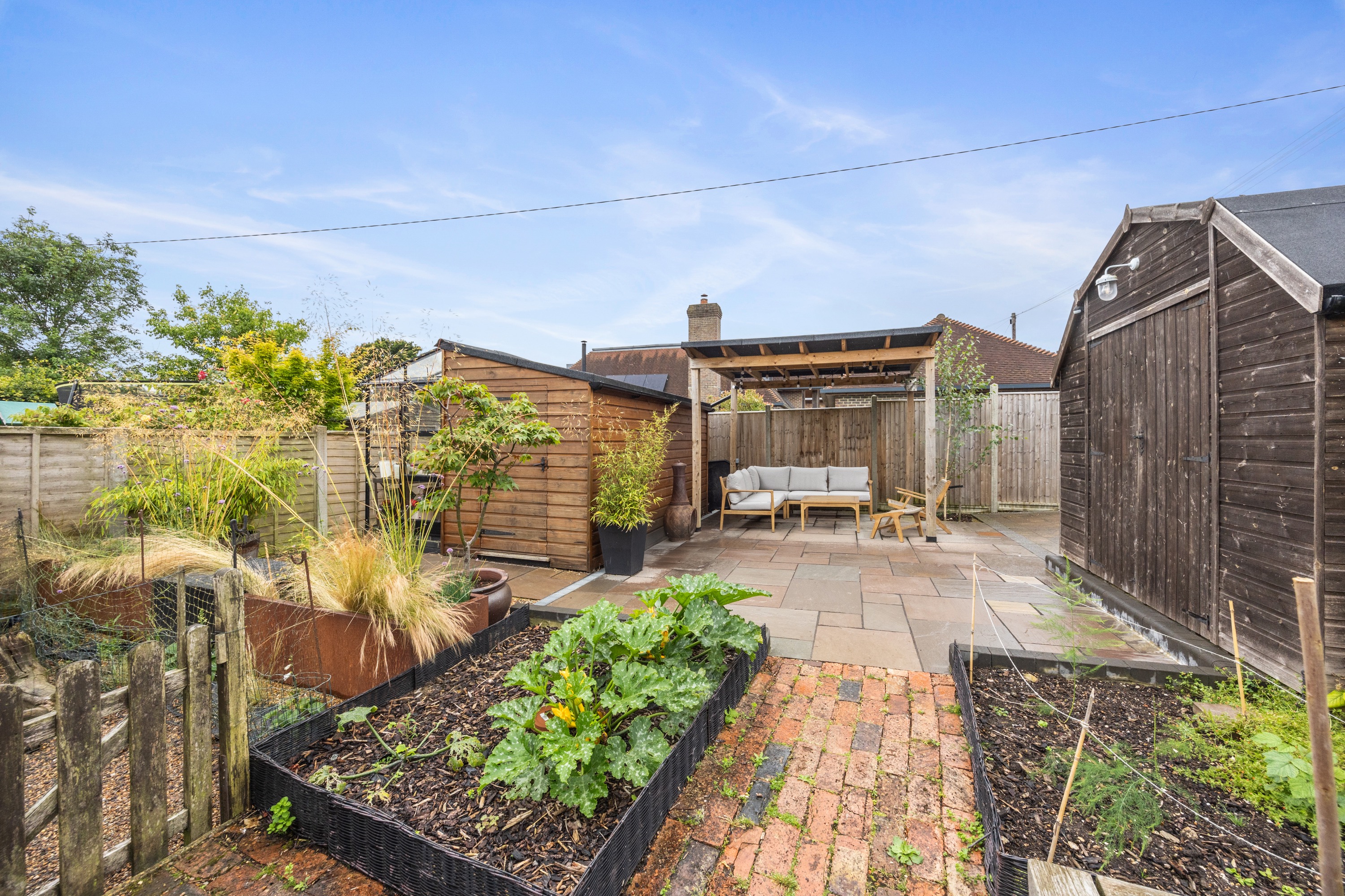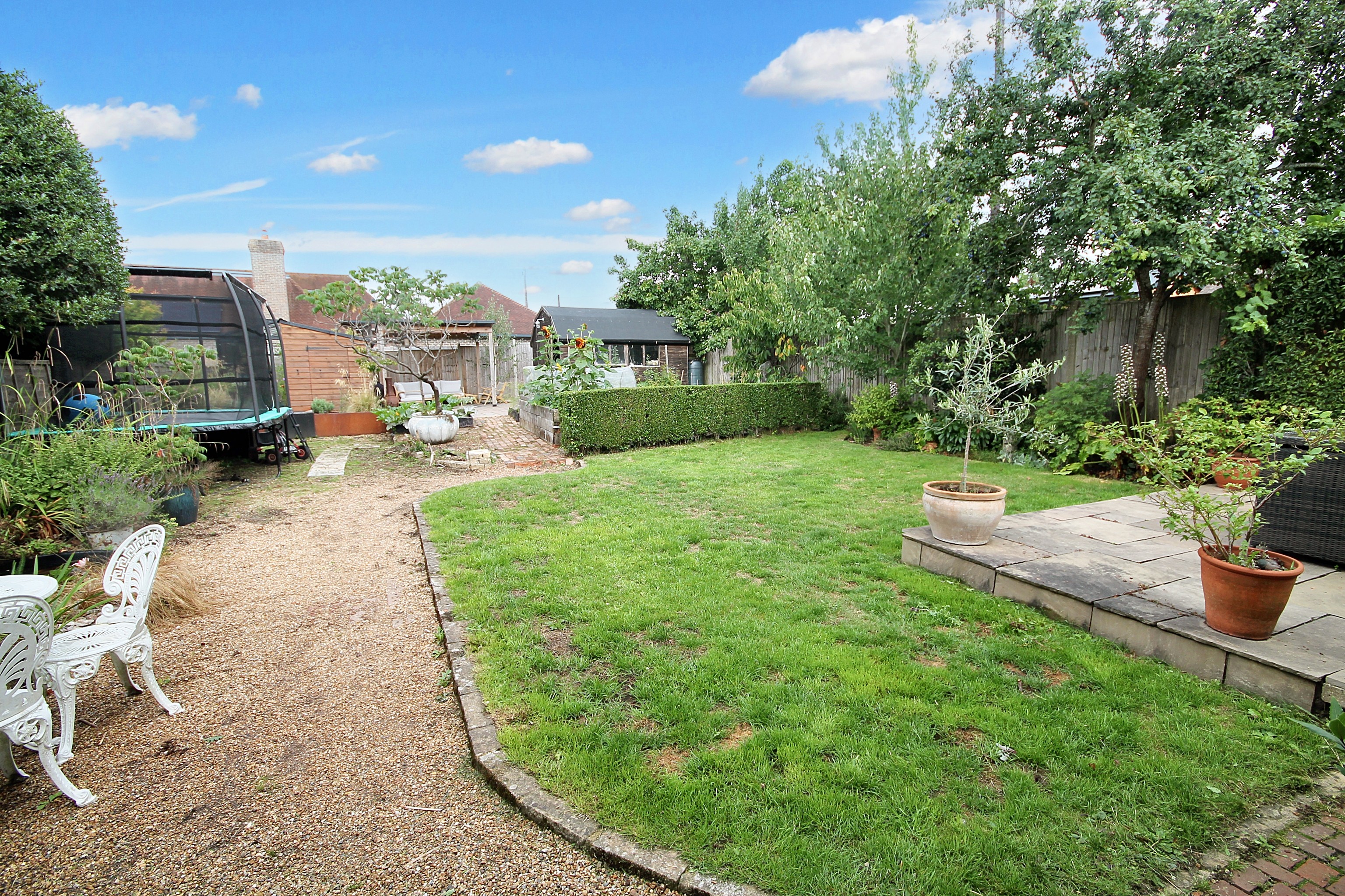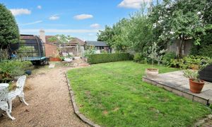 Outside; through one of the sliding doors at the rear of the property leads to the secluded and tastefully West facing landscaped rear garden. There are two distinctive patio areas, both with a canopy overhead, at both ends of the garden allowing multiple areas for sunshine. Flower beds line both sides of the garden with a good size area of lawn and fish pond/water feature. At the end of the garden are several raised beds, the further patio seating with canopy, a large, bespoke, custom-made shed with attached lean-to greenhouse and further large shed which had the roof recently re-felted. The fences at the end of the garden were replace last year with concrete posts and gravel hardstanding. There is a block paved additional parking space within the rear garden with double gates leading onto Sandy Lane. Lastly, a log store can be found down the side of the property.
