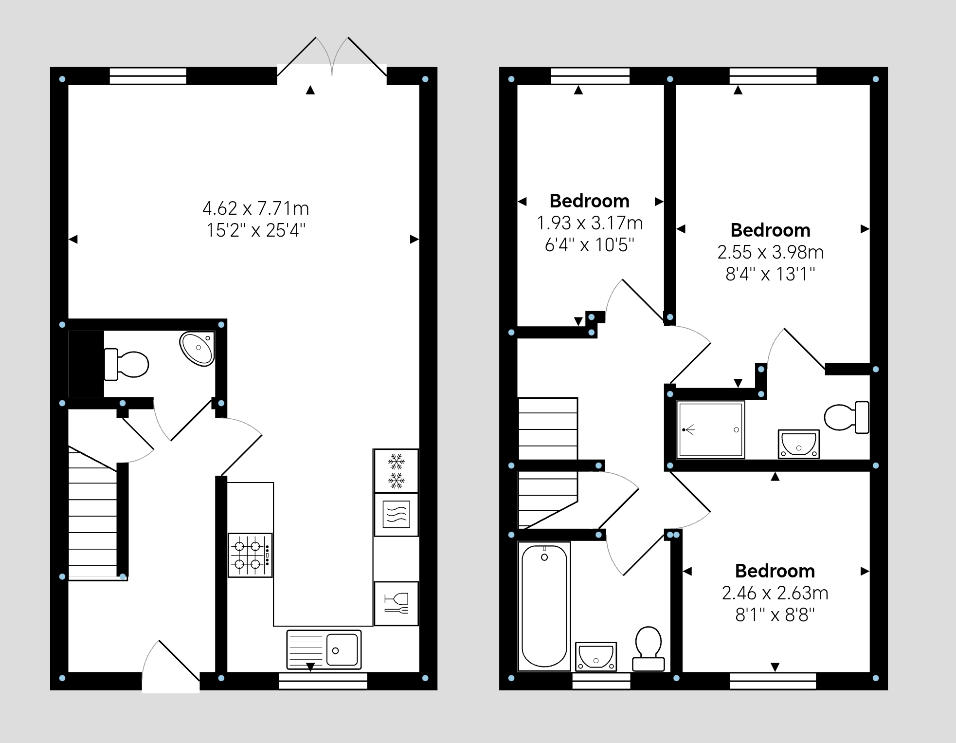 To the first floor, the main bedroom benefits from an ensuite shower room. There are two further well-proportioned bedrooms and a contemporary family bathroom.