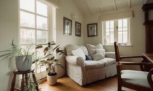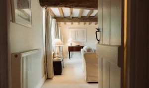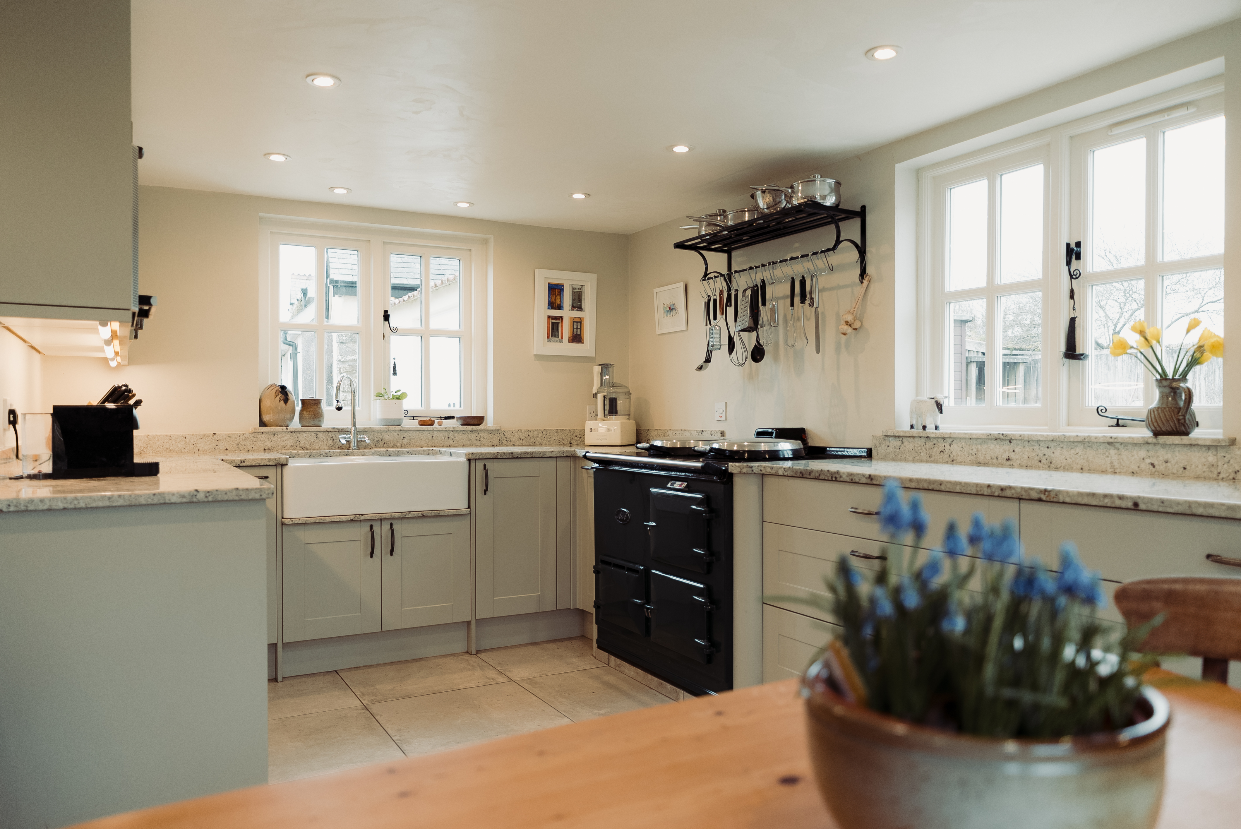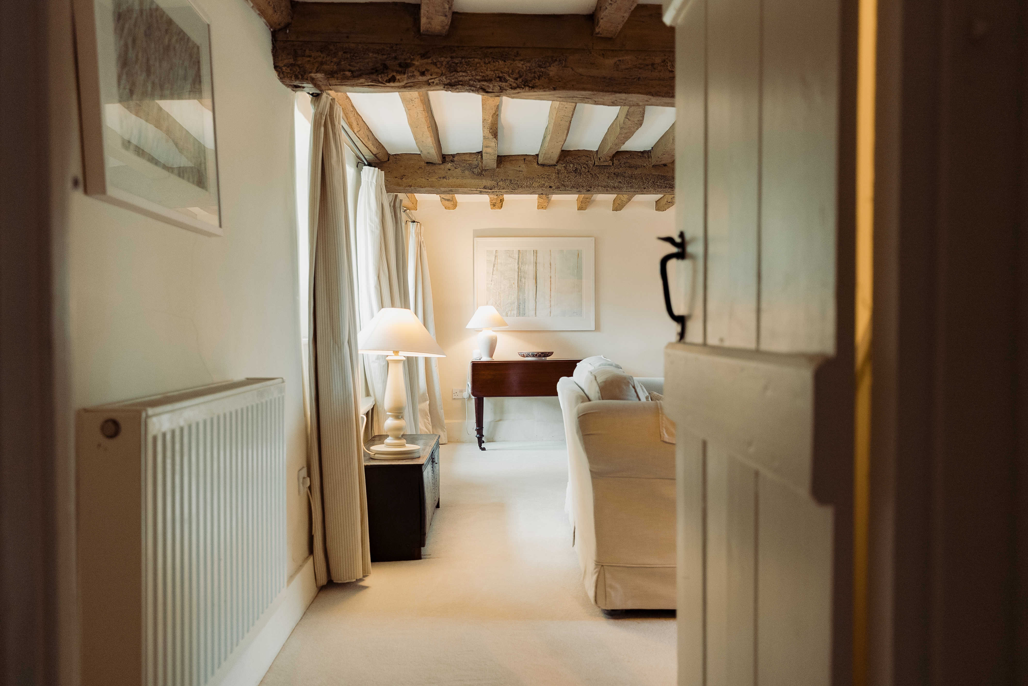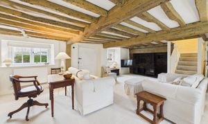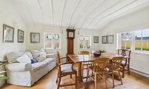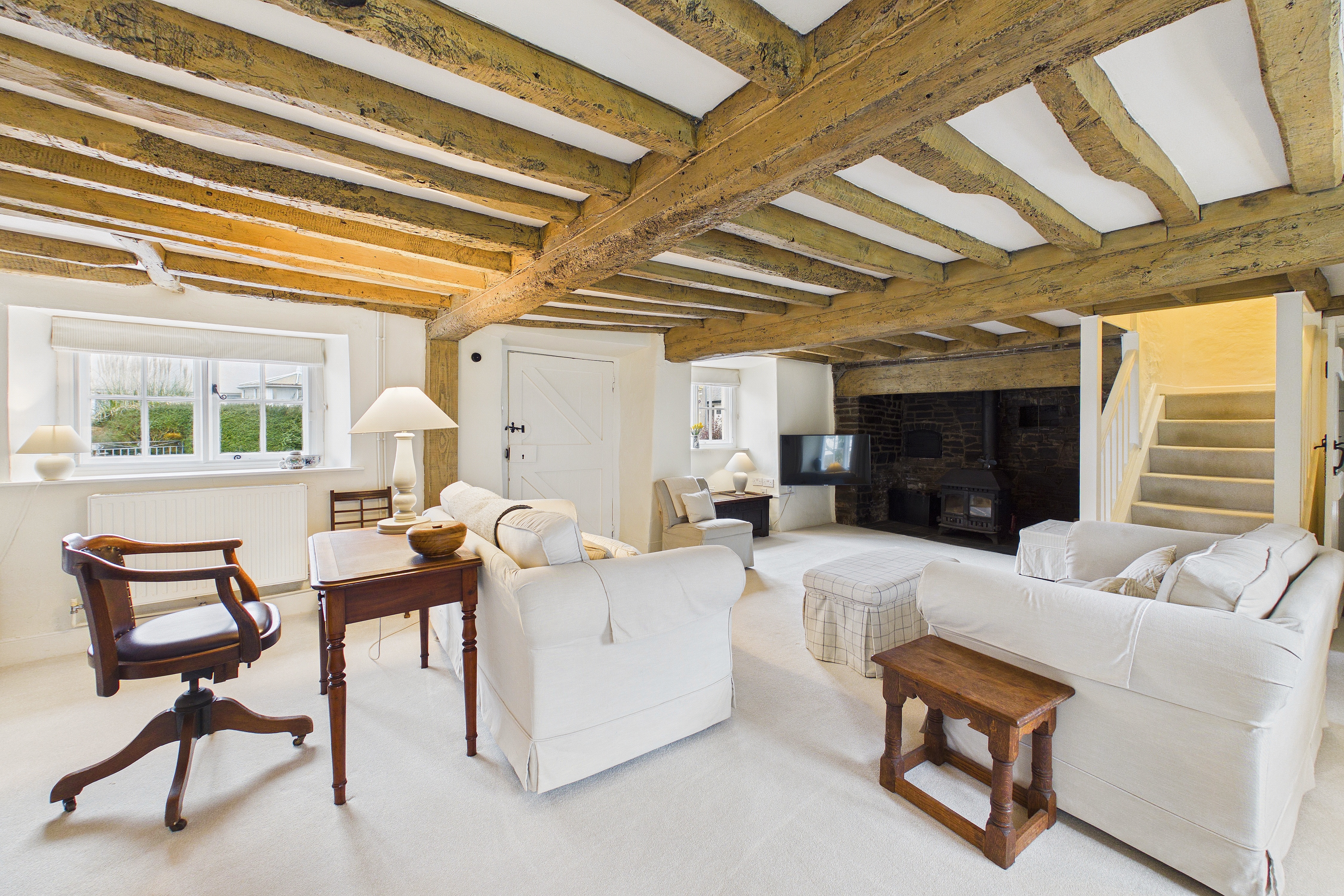 The property has evolved into a comfortable home while retaining the features that reflect its history. The sitting room is rich in original detail, with exposed beams, an inglenook fireplace, a wood-burning stove and the original bread oven still in place, creating a natural focal point.