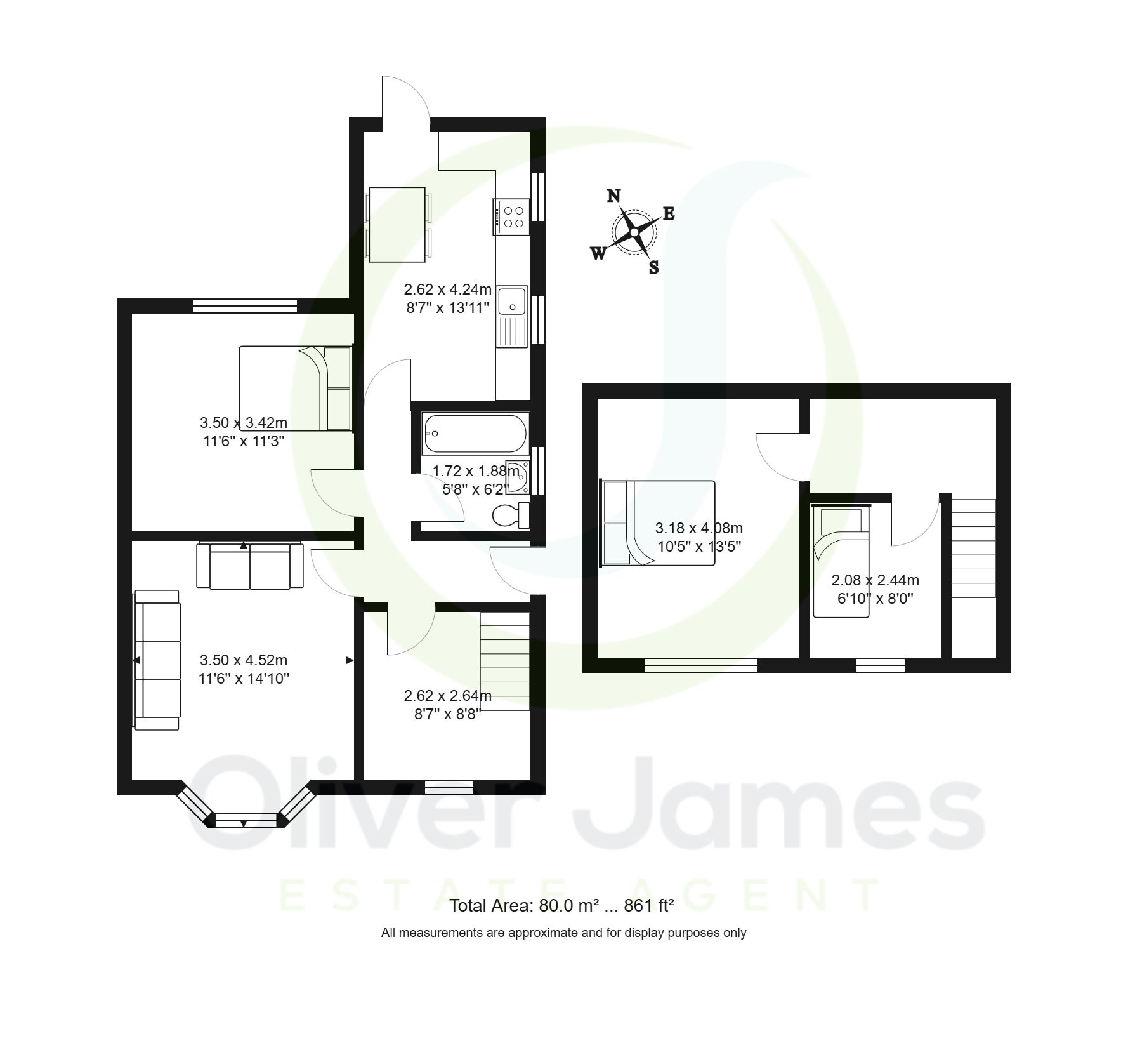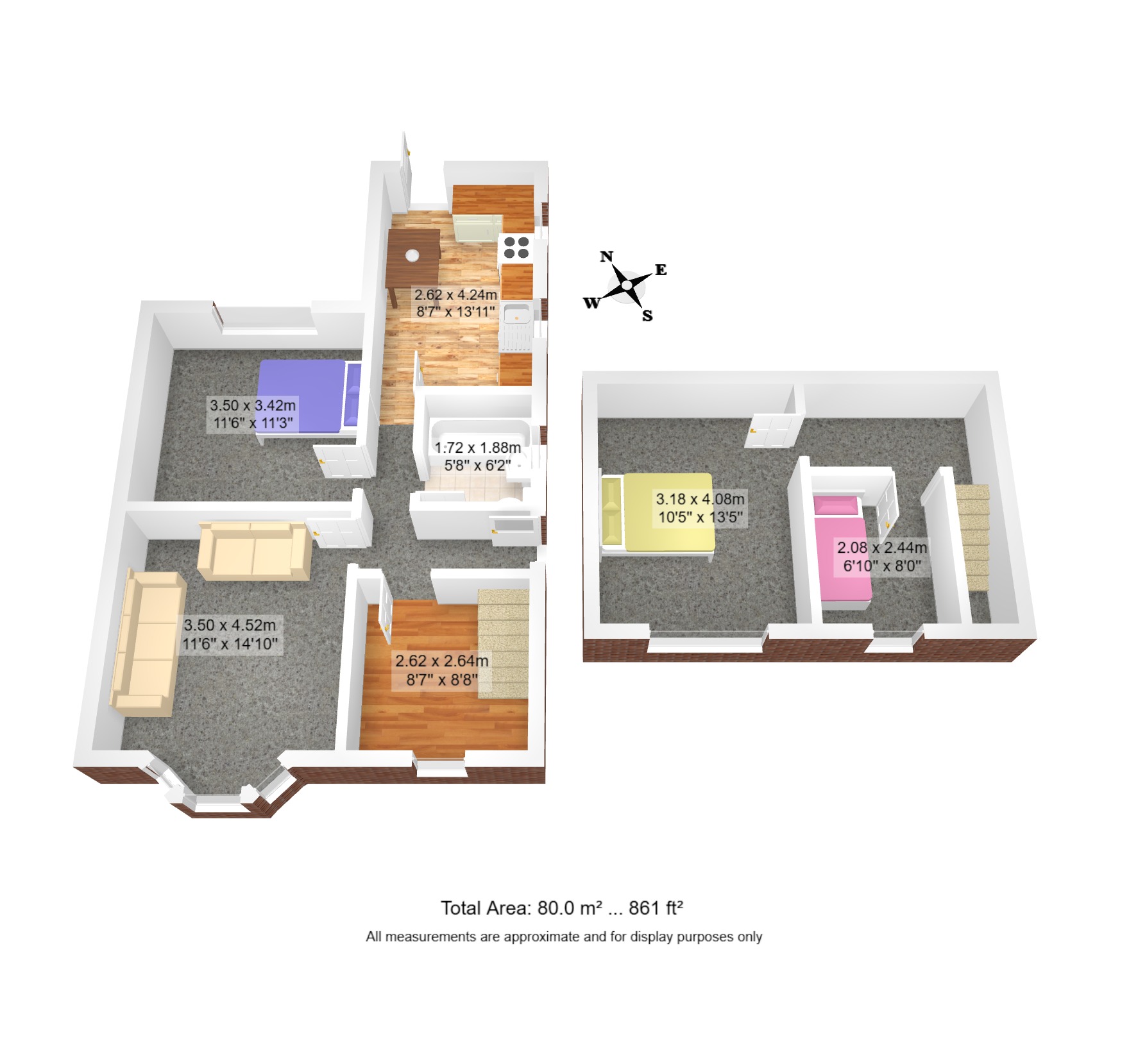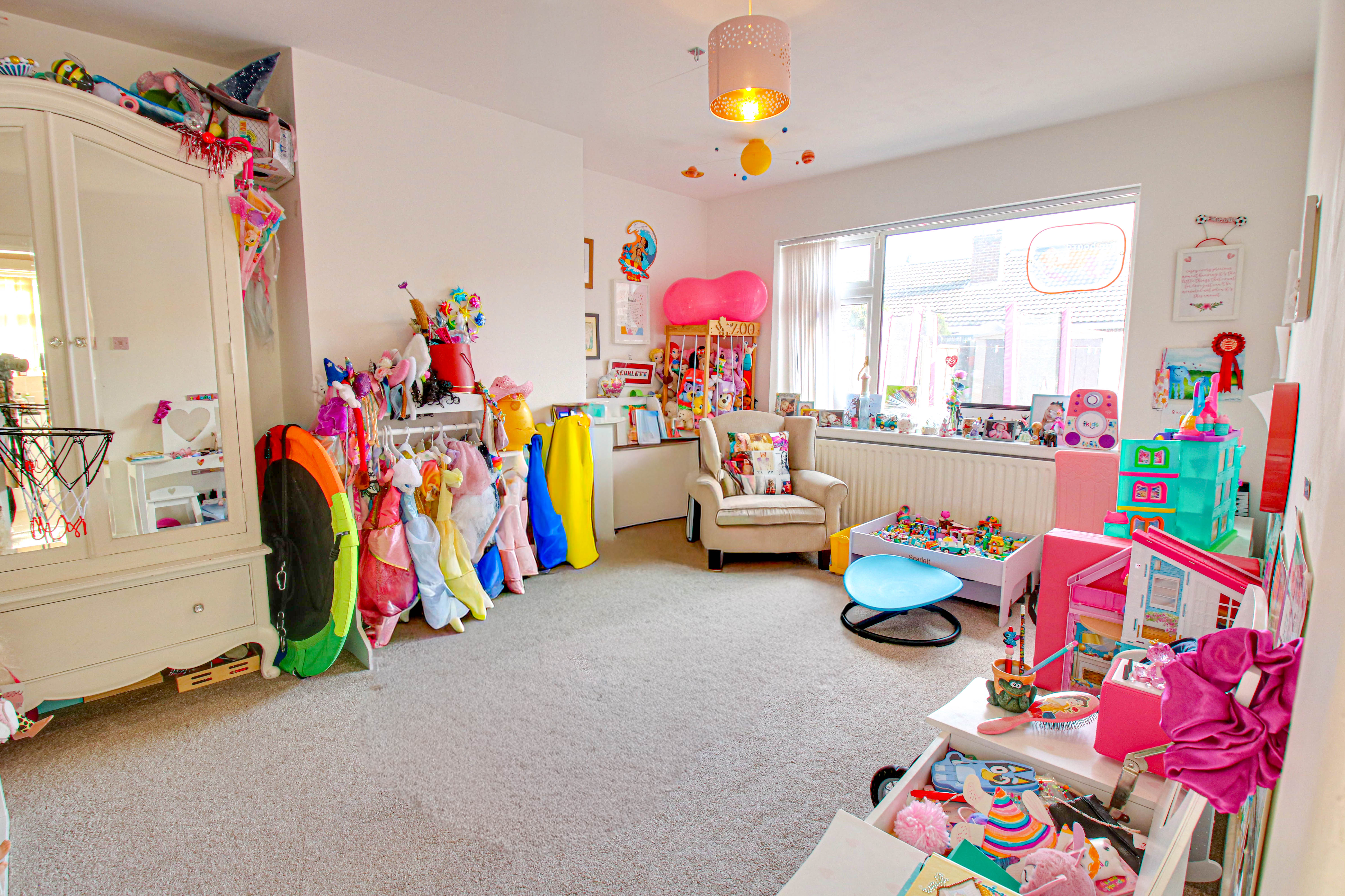 Upon entering, you are greeted by the spacious lounge featuring a charming bay window that floods the room with natural light, creating an inviting space for relaxation or entertainment. The extended kitchen provides ample room for culinary endeavours and conveniently leads to the large downstairs bedroom, currently utilised as a versatile playroom.