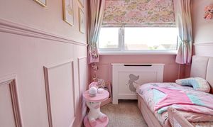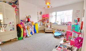 Rear facing upvc window and radiator. Currently used as a playroom, downstairs.
