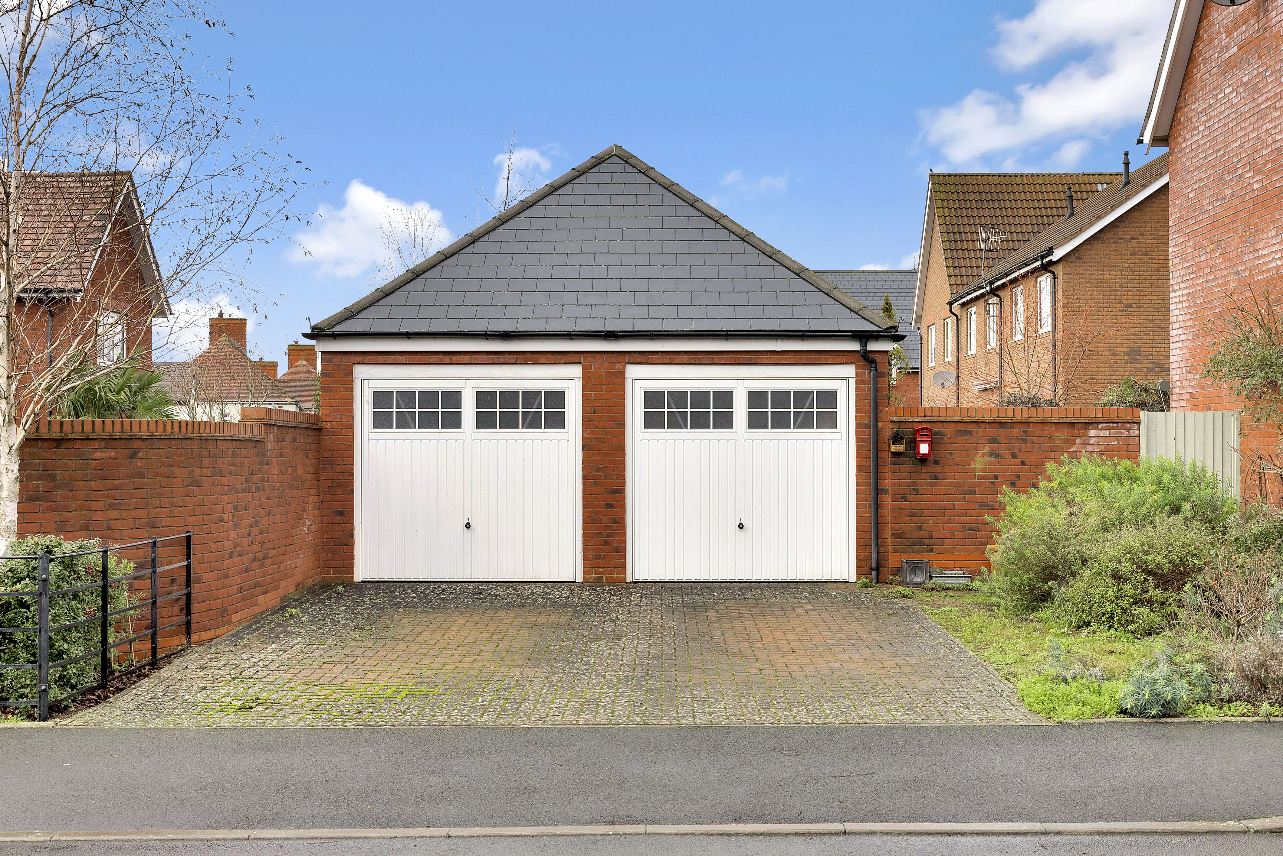- Block paved driveway parking for two vehicles and a detached double garage, adjacent to the house