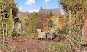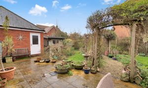 Outside, the enclosed rear gardens offer a delightful and private retreat, with paved patio seating areas ideal for al fresco dining, lawns, established shrub borders and a charming summer house; providing space for relaxation, play and entertaining throughout the seasons. The gardens have been expertly planted to provide year-round colour. To the front, block-paved driveway parking comfortably accommodates two vehicles, while a detached double garage sits conveniently adjacent to the house.