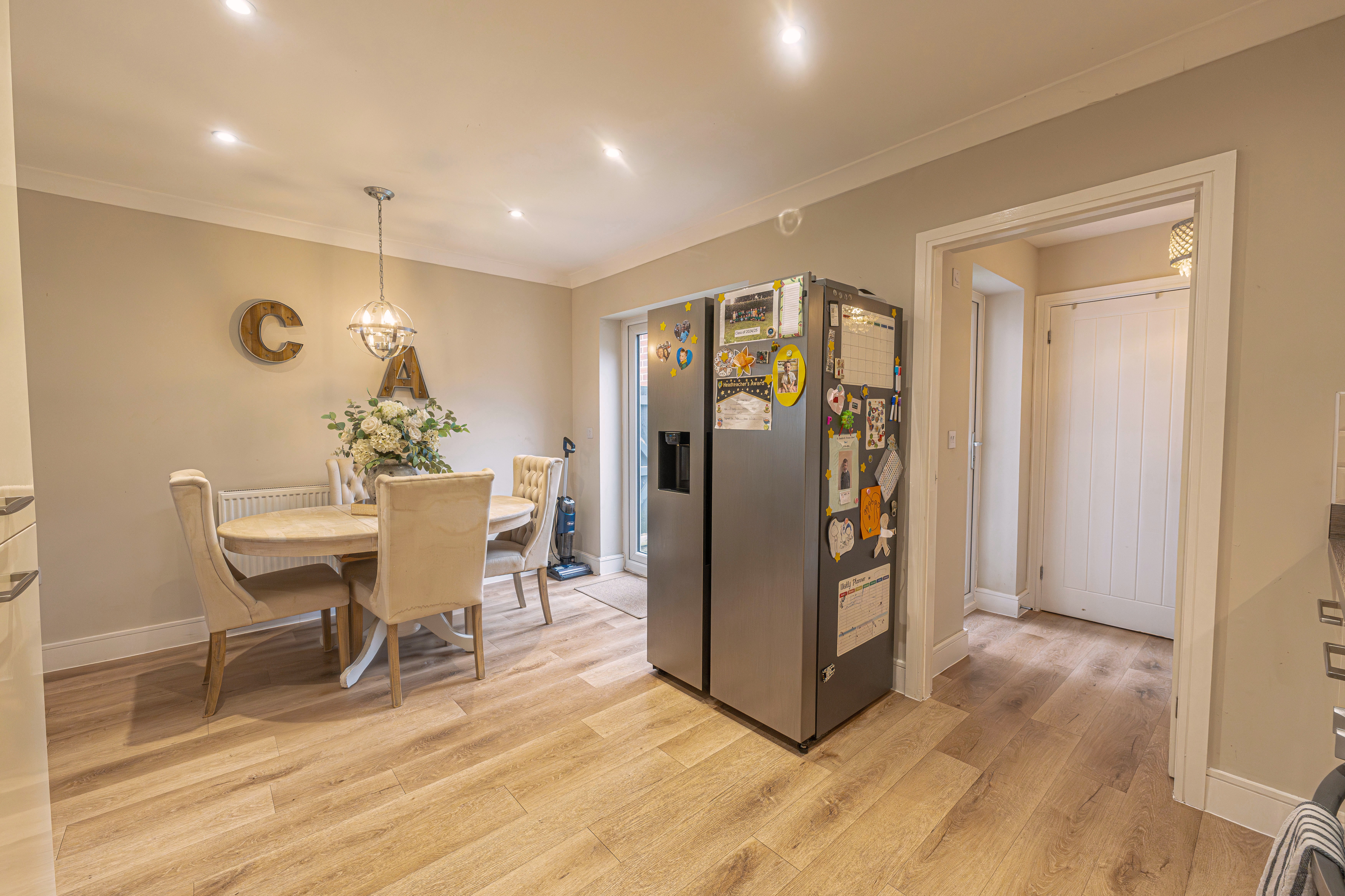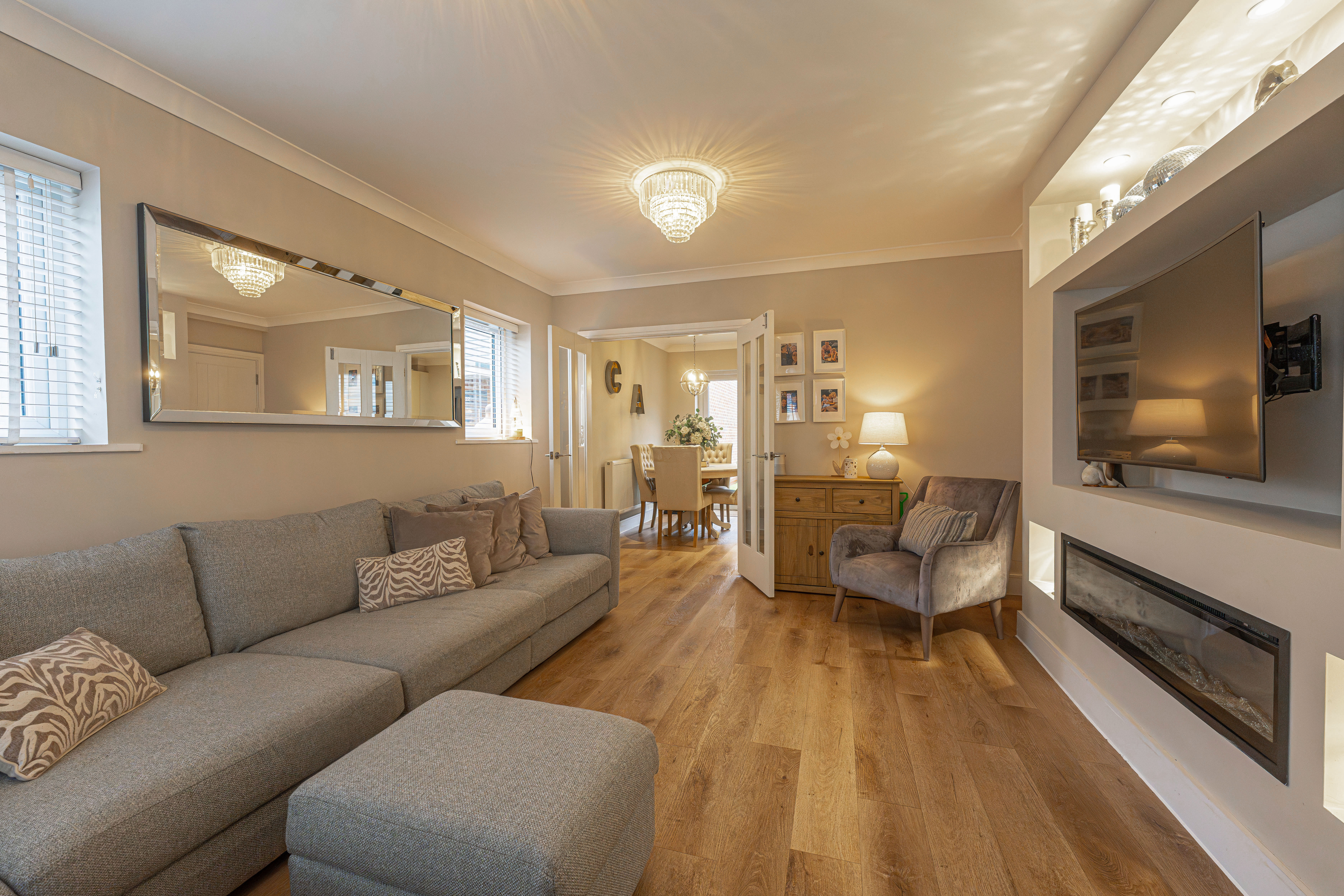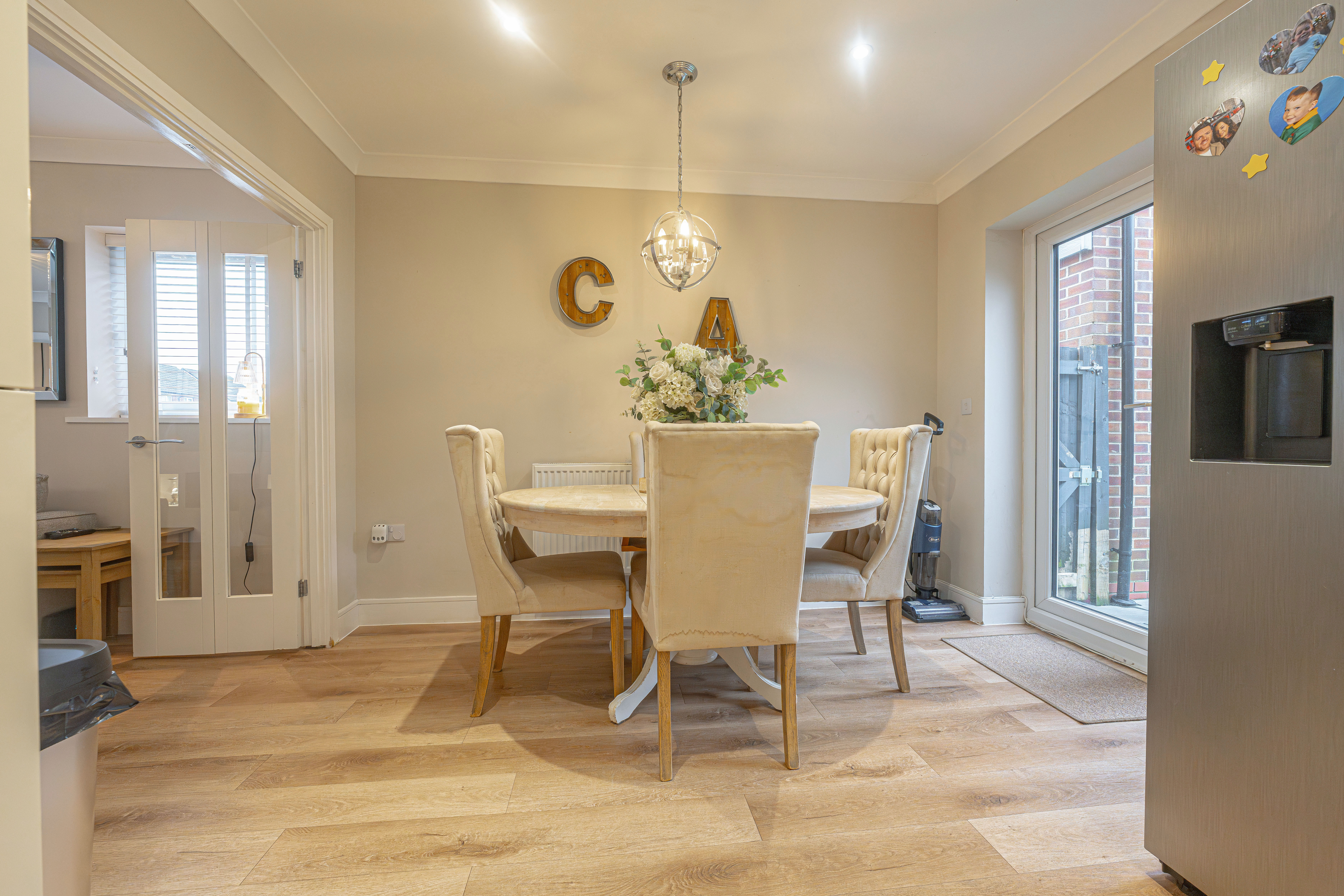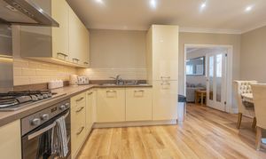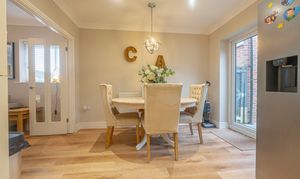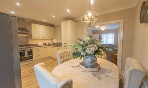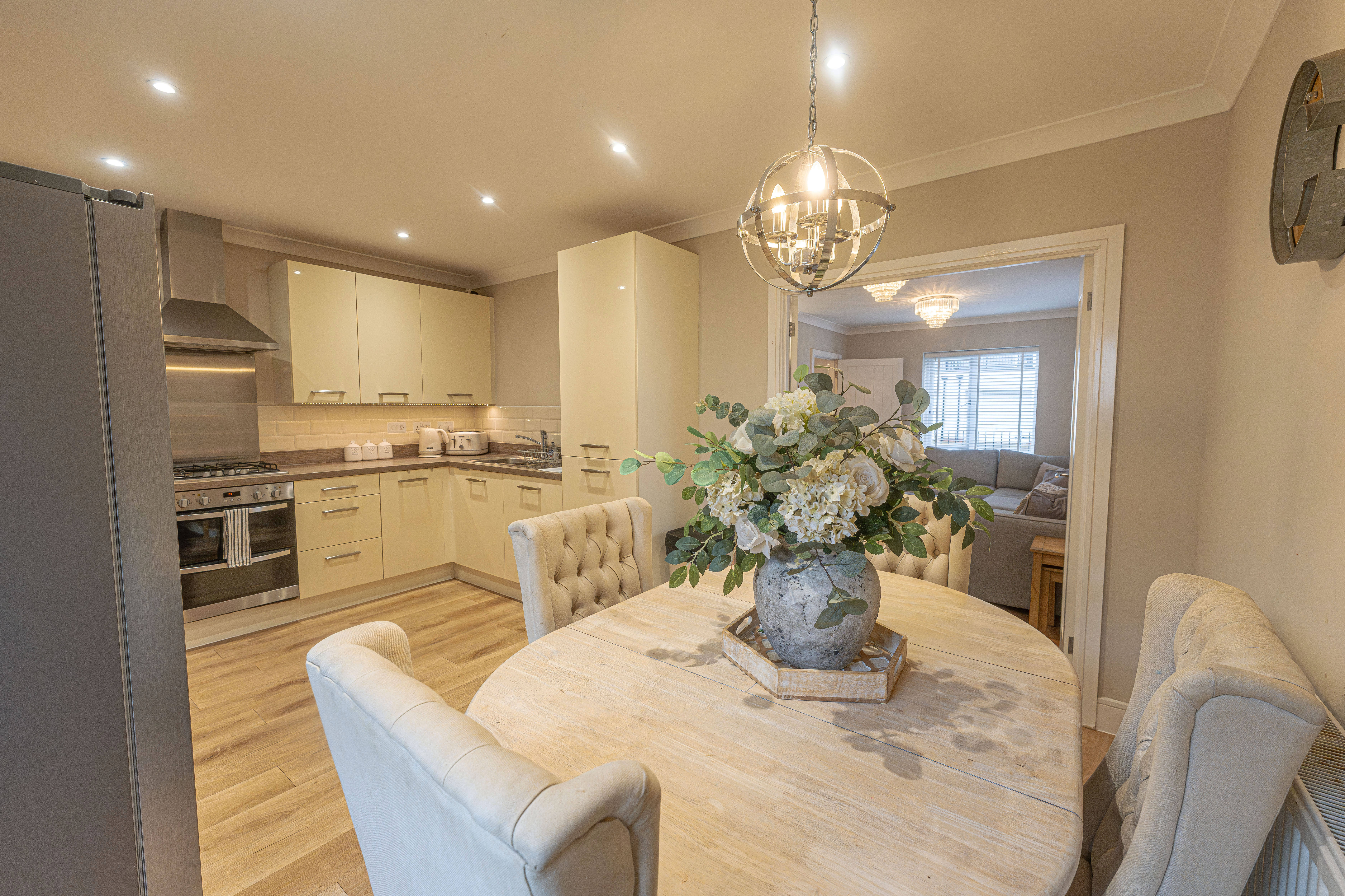 We enter this beautifully presented property to the front, where we are welcomed into the spacious living room, featuring stylish lighting fixtures, a charming fireplace, and a flood of light from multi aspect windows, creating a perfect environment for entertaining and relaxing. Continuing through we have the stylish kitchen, featuring sleek modern appliances offering ample storage space and integrated appliances, as well as an open plan design to the neighbouring dining room, and French doors that effortlessly open to the garden. Beyond the kitchen we have a helpful utility room, great for managing household tasks, with a W.C beyond.