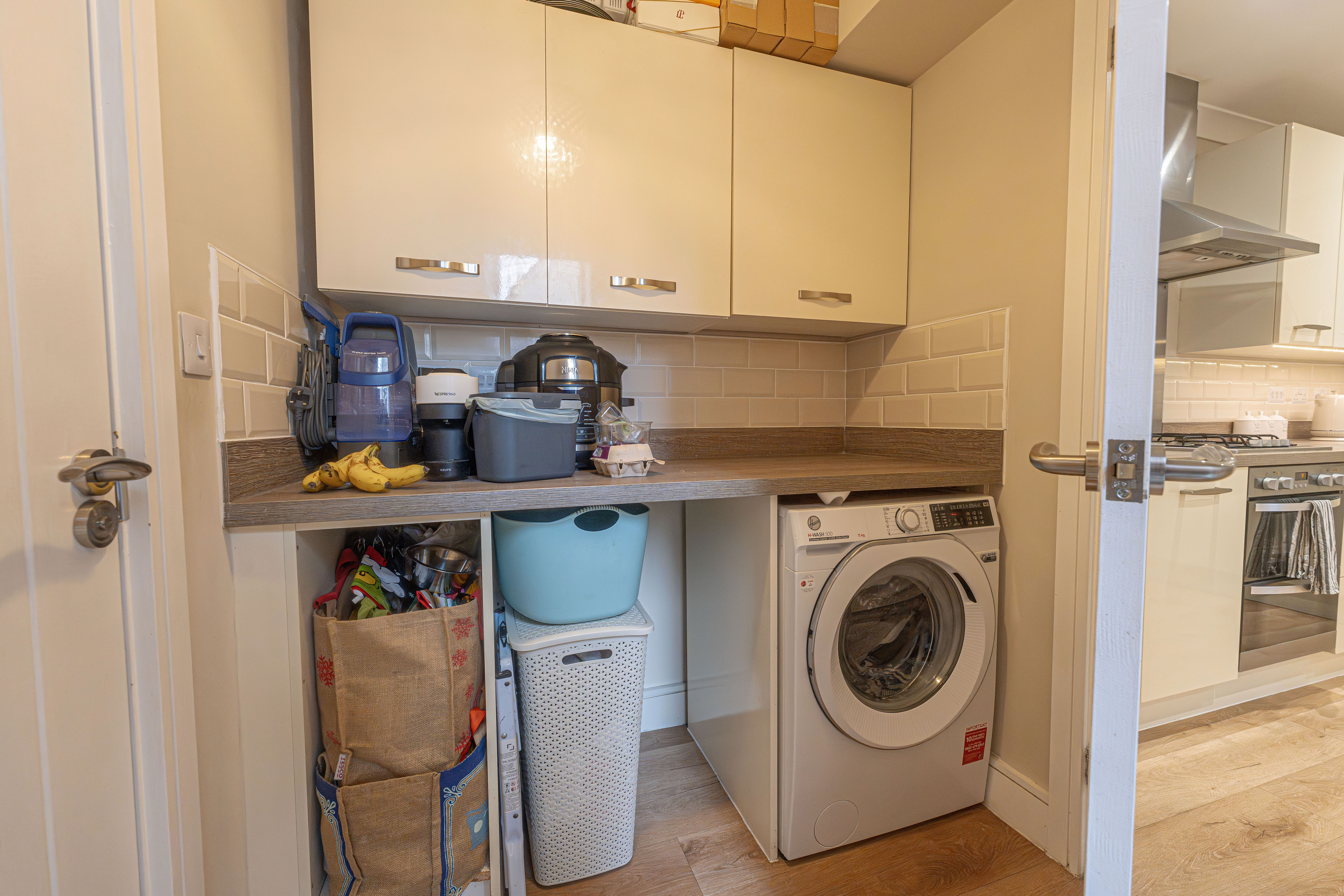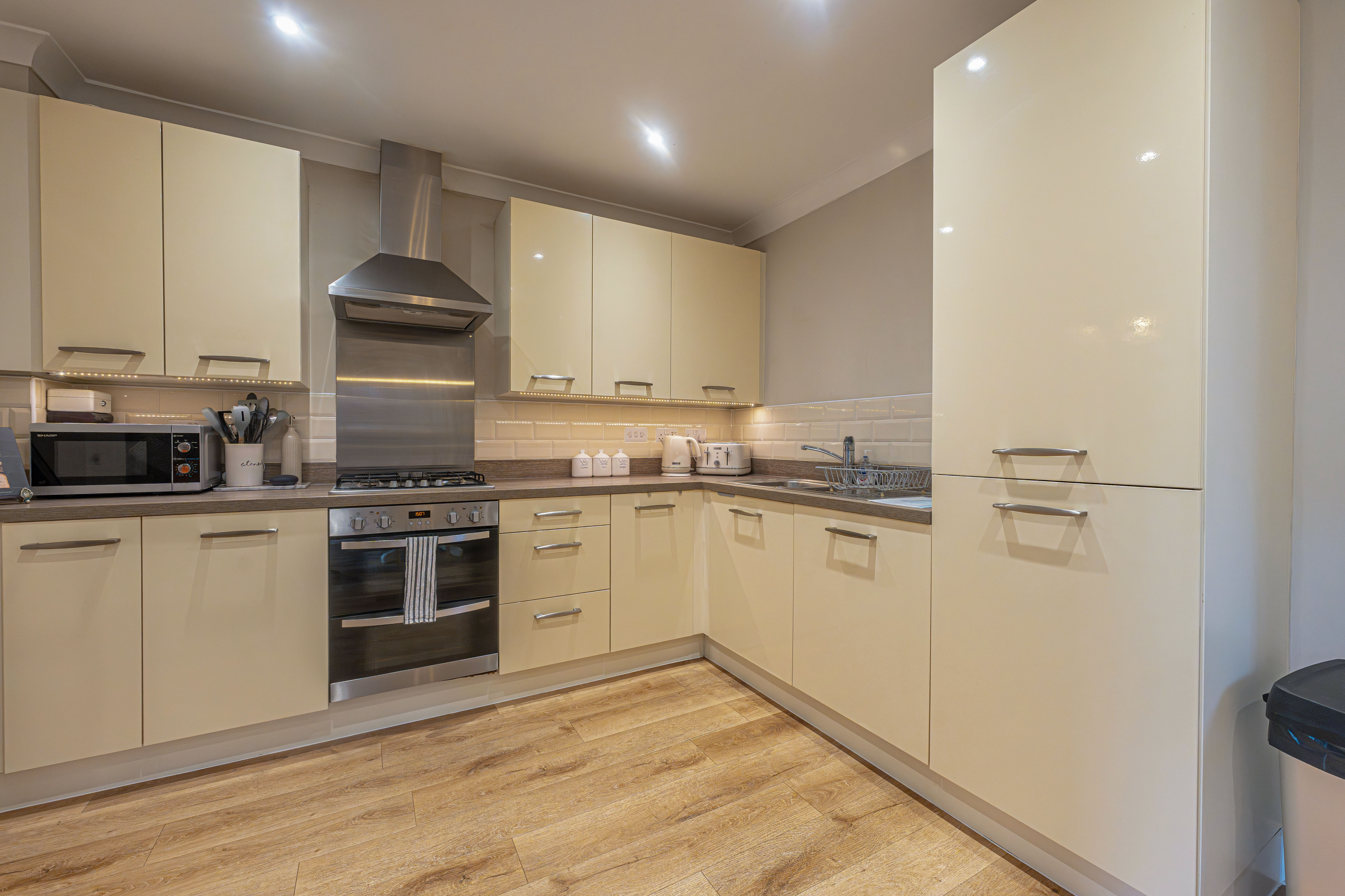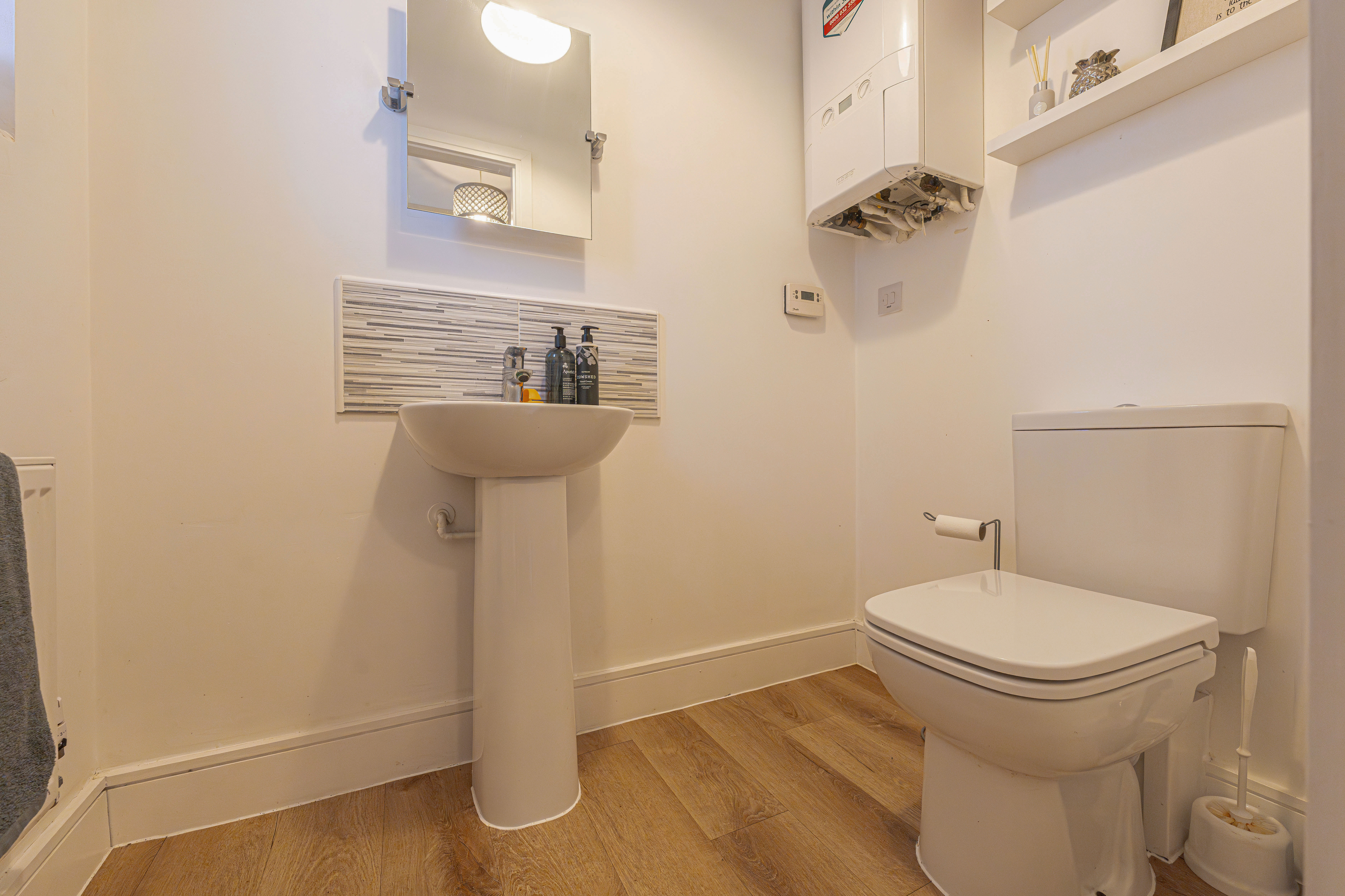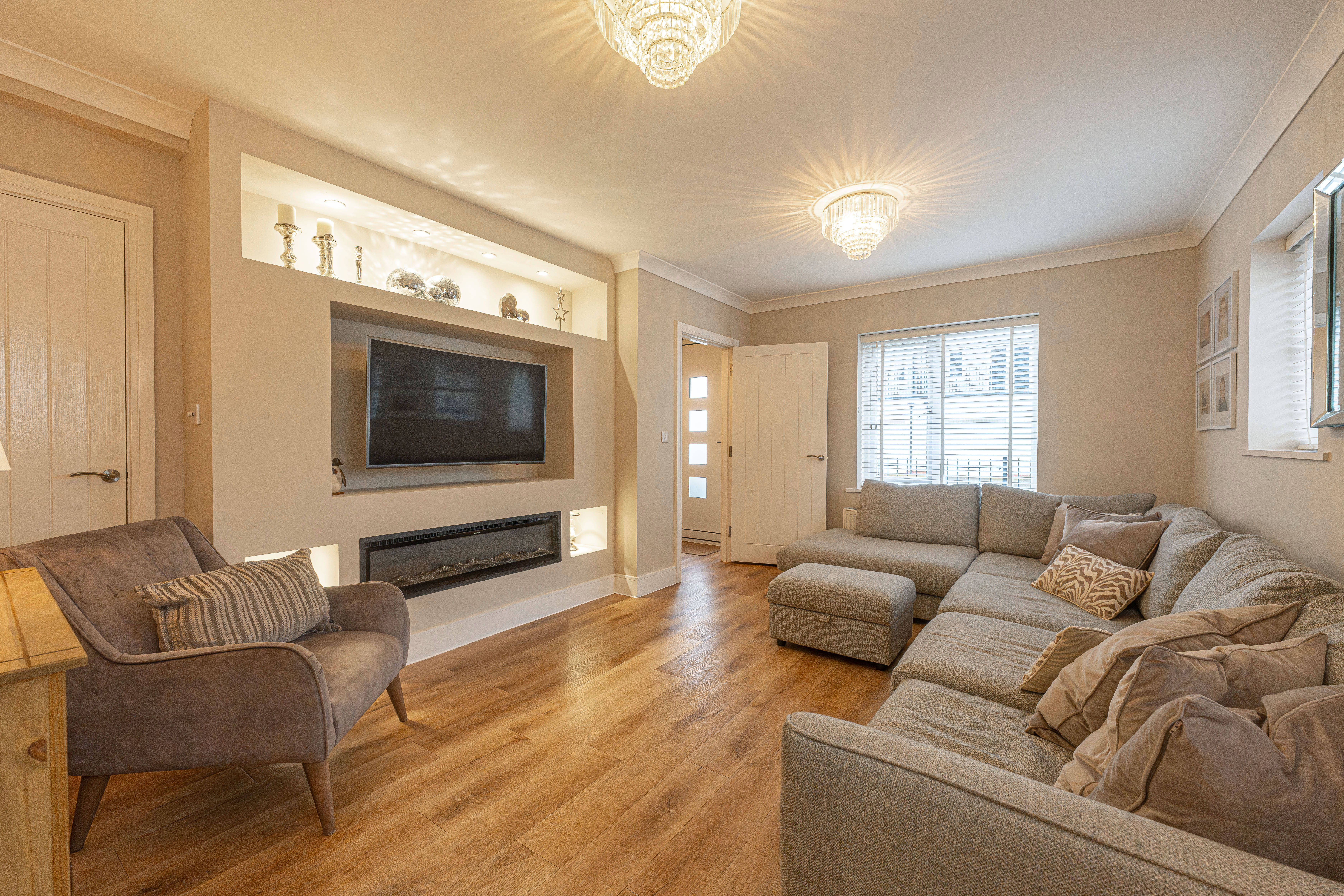We enter this beautifully presented property to the front, where we are welcomed into the spacious living room, featuring stylish lighting fixtures, a charming fireplace, and a flood of light from multi aspect windows, creating a perfect environment for entertaining and relaxing. Continuing through we have the stylish kitchen, featuring sleek modern appliances offering ample storage space and integrated appliances, as well as an open plan design to the neighbouring dining room, and French doors that effortlessly open to the garden. Beyond the kitchen we have a helpful utility room, great for managing household tasks, with a W.C beyond.