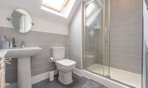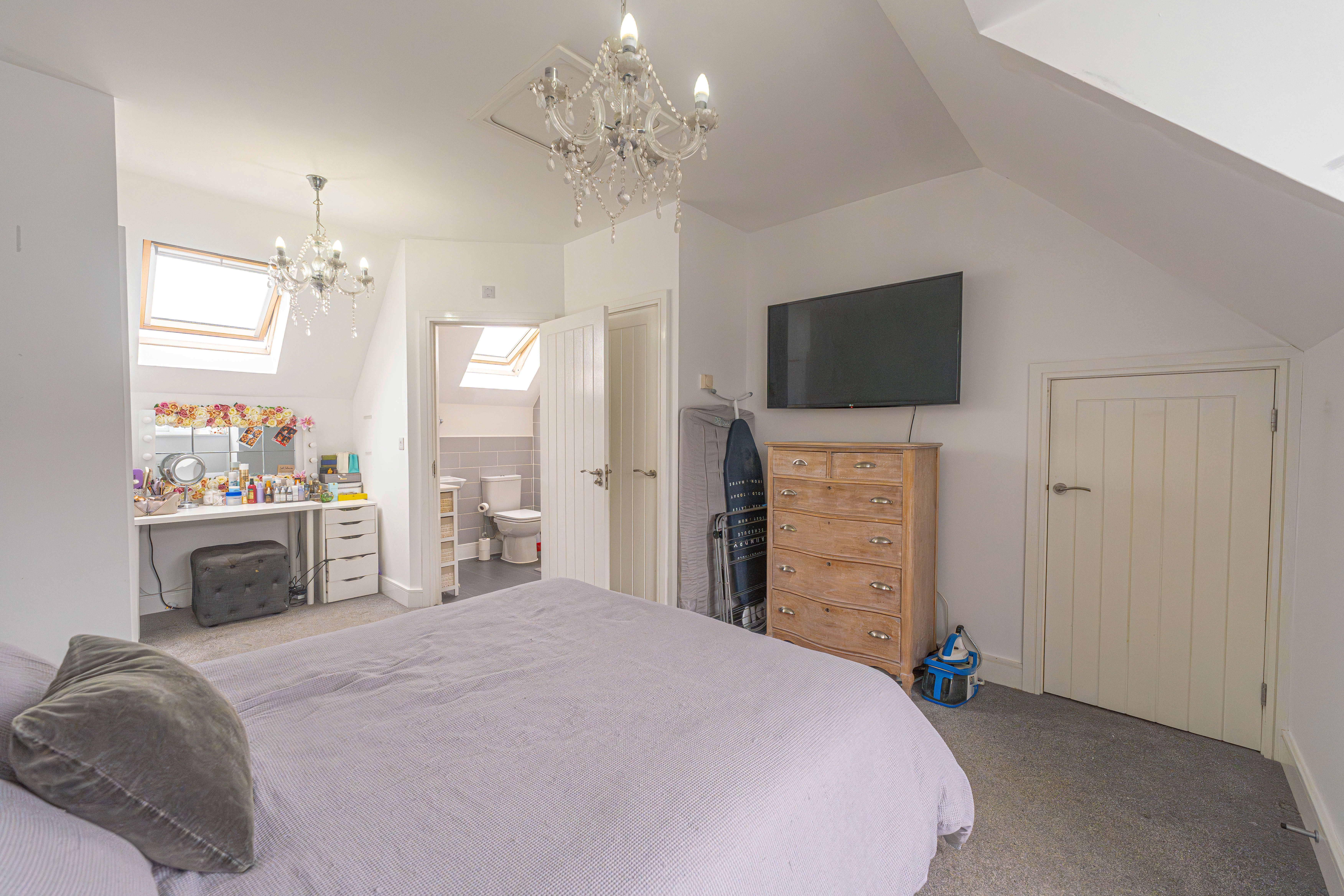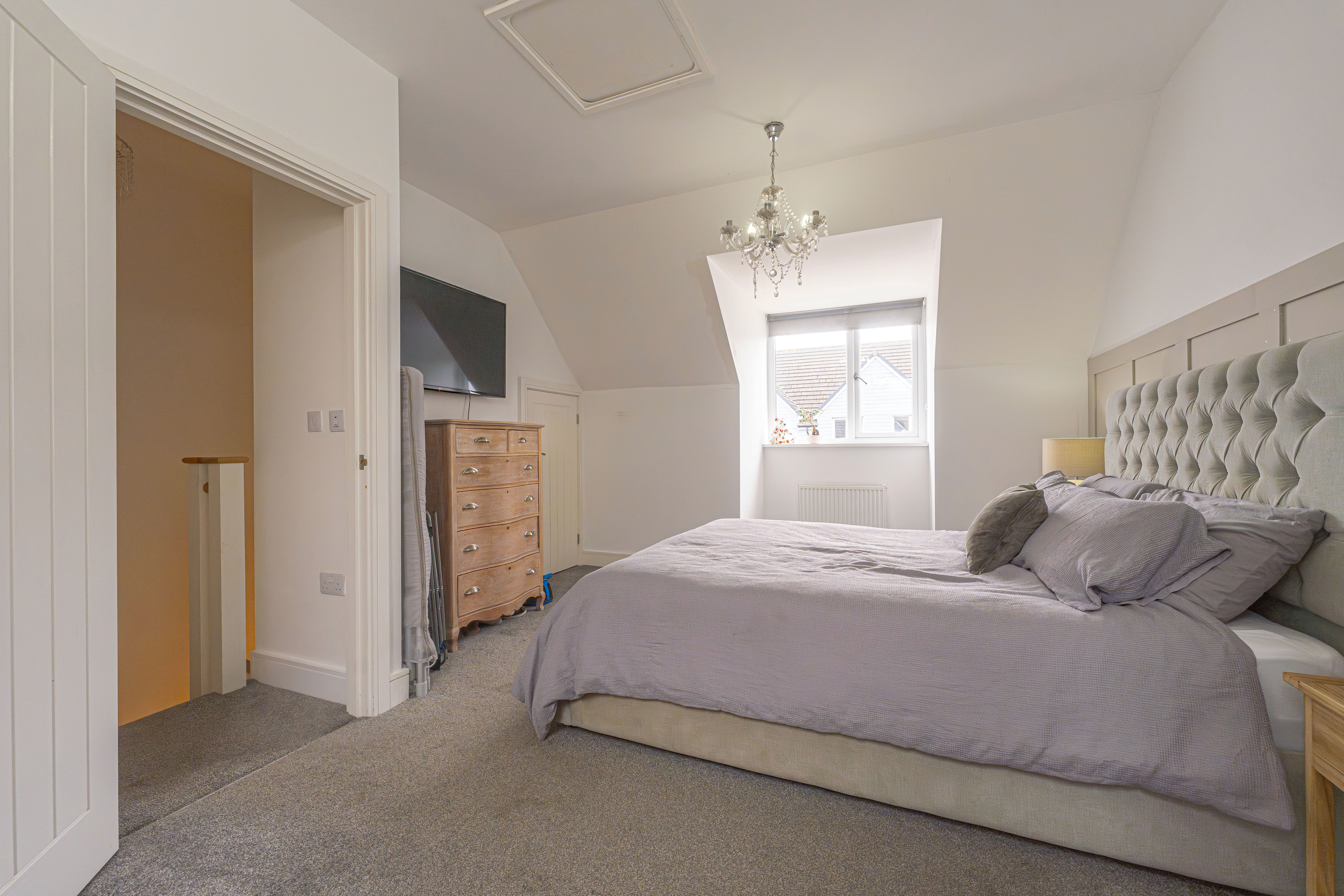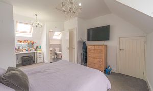 Ascending upstairs once again we can find the final fourth bedroom, which enjoys a superior size and privacy at the peak of the property, as well as multiple windows, fitted wardrobes for optimal storage, and an en-suite shower room.