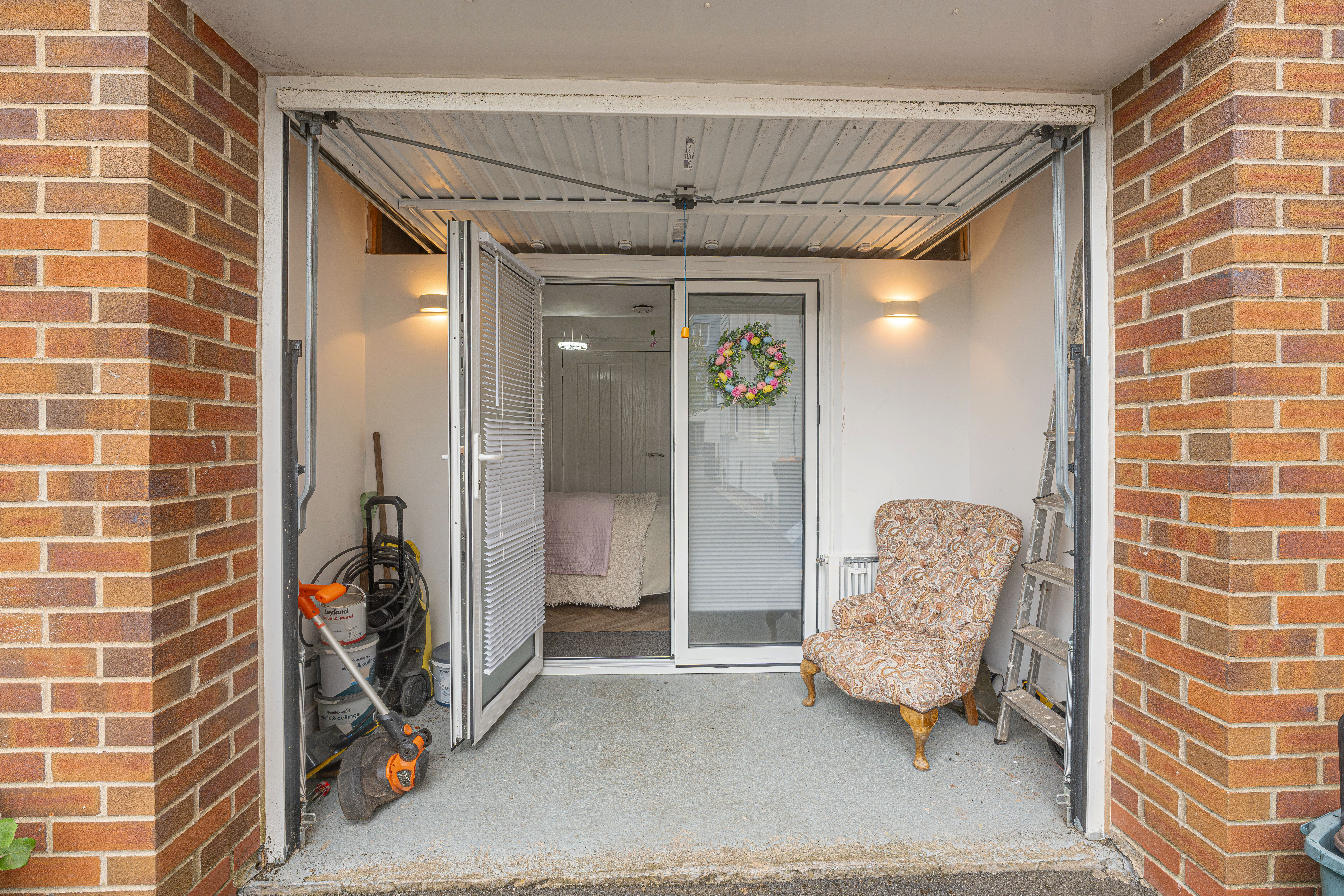 There is a driveway at the side of the home, providing off-road parking for 1-2 vehicles The garage has been partially converted for use as business space, while retaining a partial storage section beyond. It can be reverted back, should potential buyers wish to use it as a full parking or storage facility.