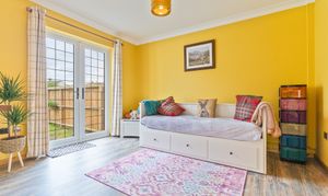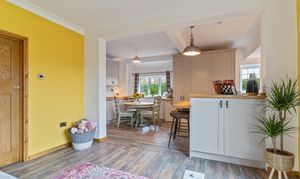 On the ground floor, you are welcomed into a bright and inviting hallway, providing access to the main living areas and stairs leading to the first floor. To the left, the lounge is light and spacious, featuring a beautiful bay fronted window that floods the room with natural light and provides a comfortable space for relaxing and entertaining. To the rear of the property is the impressive open plan kitchen and family room, designed with modern living in mind. The fitted kitchen offers ample storage and worktop space, while the adjoining dining and seating area creates a wonderful social hub for the home. Patio doors open directly onto the rear garden, allowing for a seamless indoor-outdoor flow—perfect for family gatherings or summer entertaining. From here, there is access to a rear hallway leading to a convenient utility and shower room.