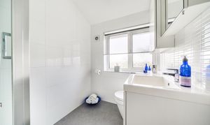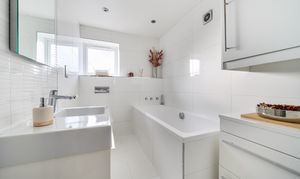 Adjacent to the kitchen is a useful utility room, providing additional storage and laundry facilities. There is also a second modern, full bathroom with white three piece suite.