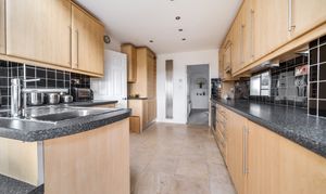 To the rear, the kitchen/family room forms the heart of the home and is arranged to make the most of the garden setting and open views beyond. Fitted with a comprehensive range of wall and base units with ample worktop space, the room also provides generous space for dining and relaxed family seating, creating an excellent everyday living area. Glazed doors open directly onto the rear garden, allowing for easy indoor/outdoor flow during the warmer months.