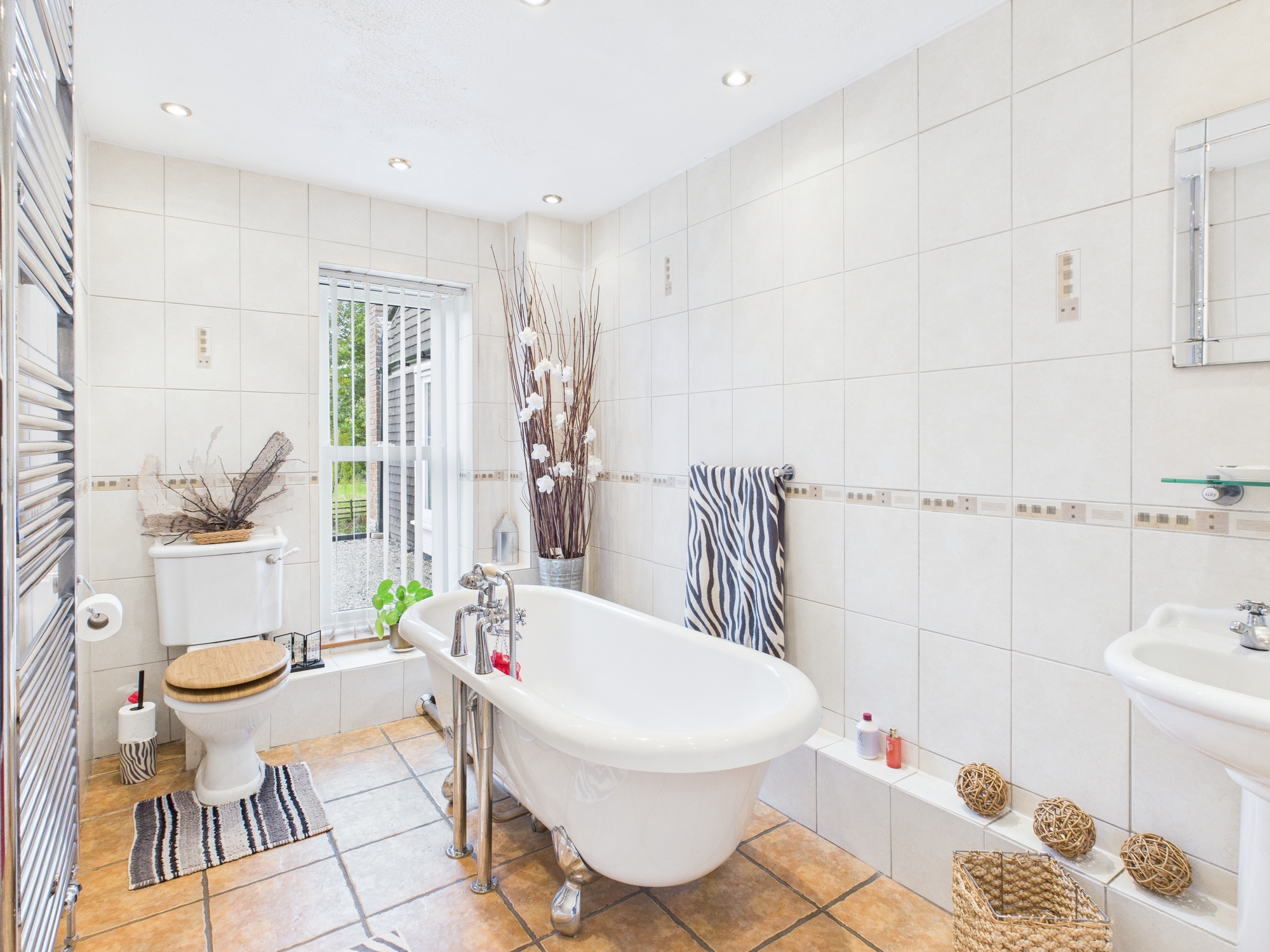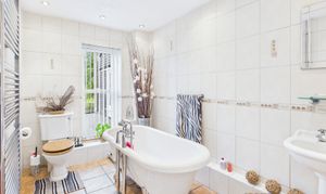 Upstairs are four bedrooms, an en-suite shower room to the master and family bathroom with rolltop bath. The master bedroom and bedroom three also benefit built-in wardrobes.