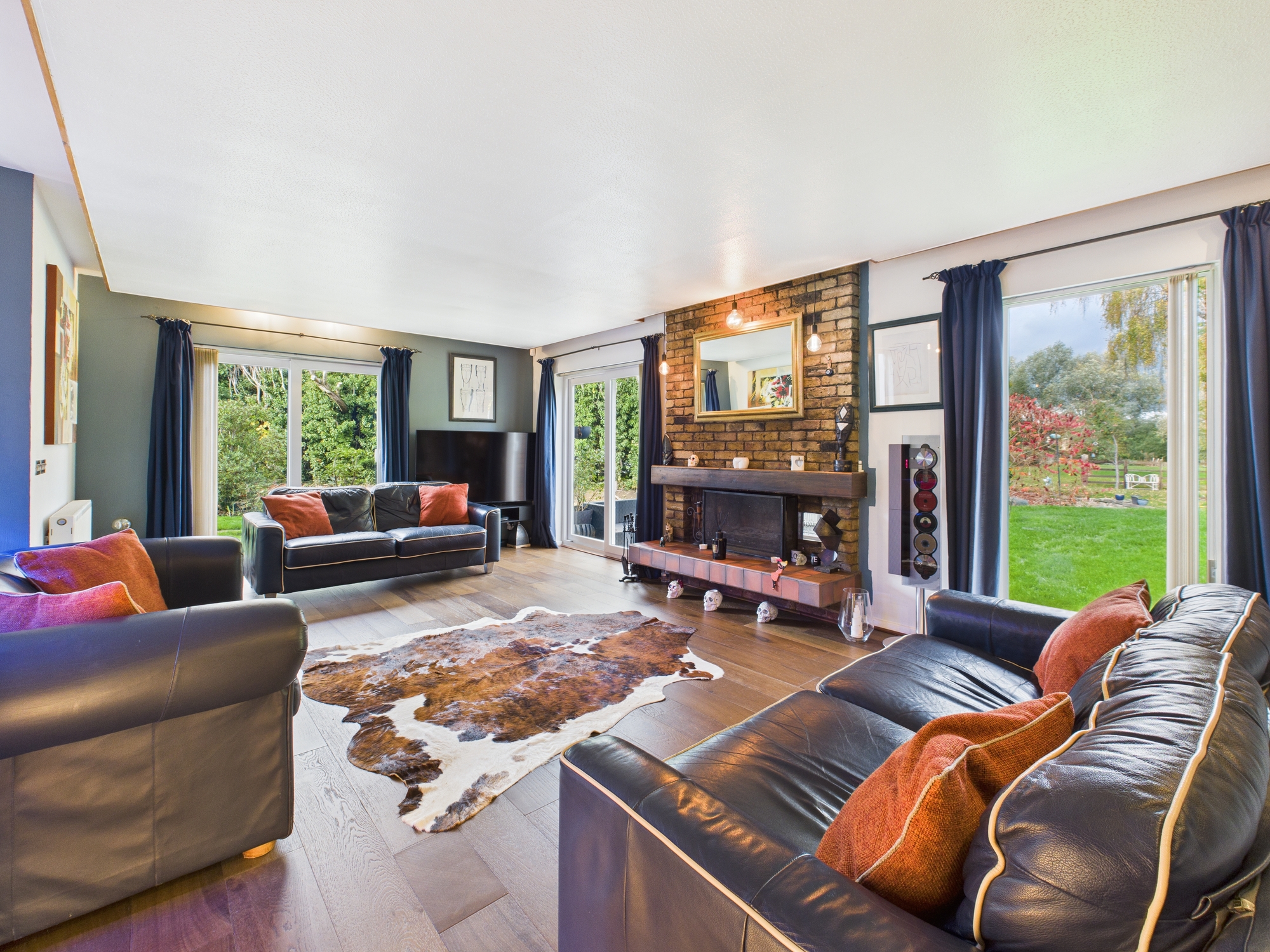 Situated in the village of Nether Heyford, this individual detached family home was designed by Peter Haddon and built in 1976. The accommodation offers an entrance hall, triple aspect sitting room with an exposed brick fireplace, dining room, kitchen with integrated appliances, study, utility room and two cloakrooms to the ground floor. Upstairs are four double bedrooms, en-suite shower room to the master and a family bathroom with roll top bath. The plot extends to approximately 0.90 acres including front and rear gardens. The rear garden offers a versatile space featuring large lawn, patio, stream with a bridge and side access. At the front the garden is laid to lawn with driveway and double garage.