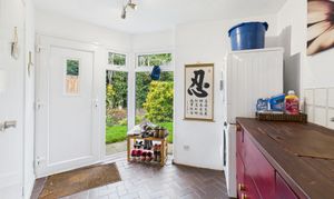 The ground floor entrance hall opens into an inner hallway with built-in storage and stairs to the first floor. There is a triple aspect sitting room complete with an exposed brick open fireplace, dual aspect dining room with French doors into the garden, kitchen/breakfast room with appliances included, study, two cloakrooms and a utility room with further built-in storage, personal door in the garage and side access.