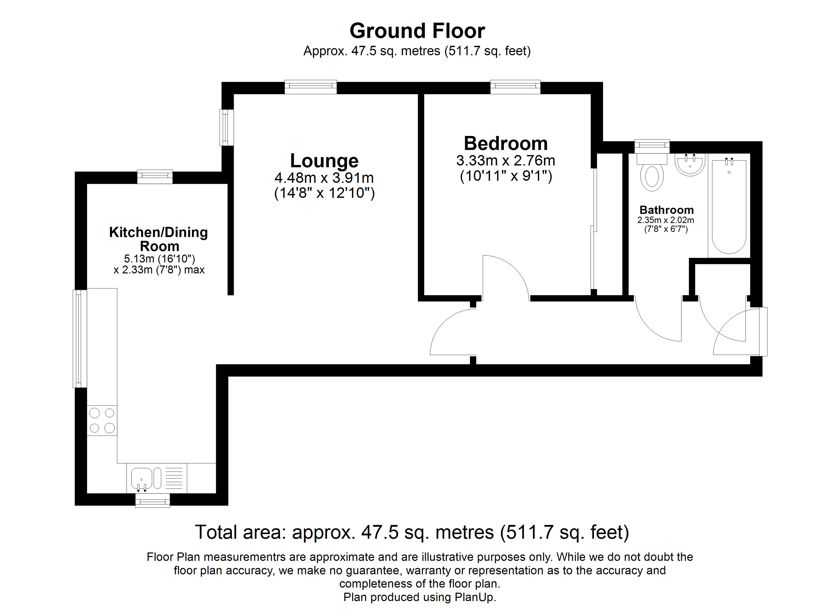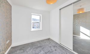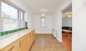 The lounge is a very good size, benefiting from 2 windows to a dual aspect, wood flooring, pendant lighting, and ample room for lounge and storage furniture.