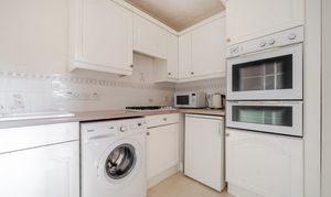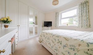 Inside, a welcoming entrance hall leads to a sunny west facing sitting room, the perfect space for relaxing and entertaining while enjoying the afternoon and evening light. The fitted kitchen is well designed, complete with an integrated electric oven and gas hob, offering practicality for everyday living. There are two well-proportioned bedrooms, with the principal bedroom benefiting from full width built-in wardrobes that provide excellent storage. A modern bathroom completes the accommodation, featuring a suite with a shower over the bath.