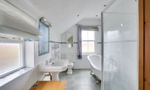 Upstairs, there are two well-proportioned double bedrooms, a family bathroom, and a cupboard housing the boiler.