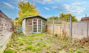 Privately enclosed rear garden. The garden features a useful timber-framed outbuilding offering additional storage or workspace.