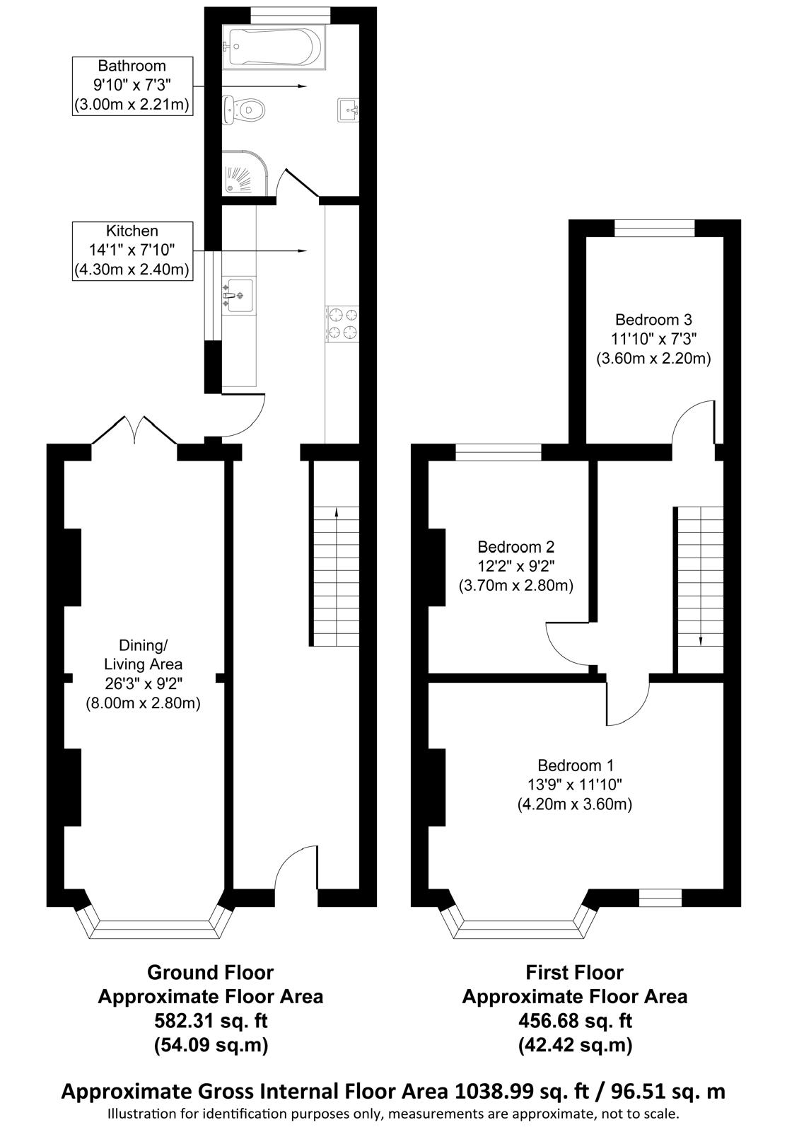 - Three double bedrooms including bay-fronted main bedroom