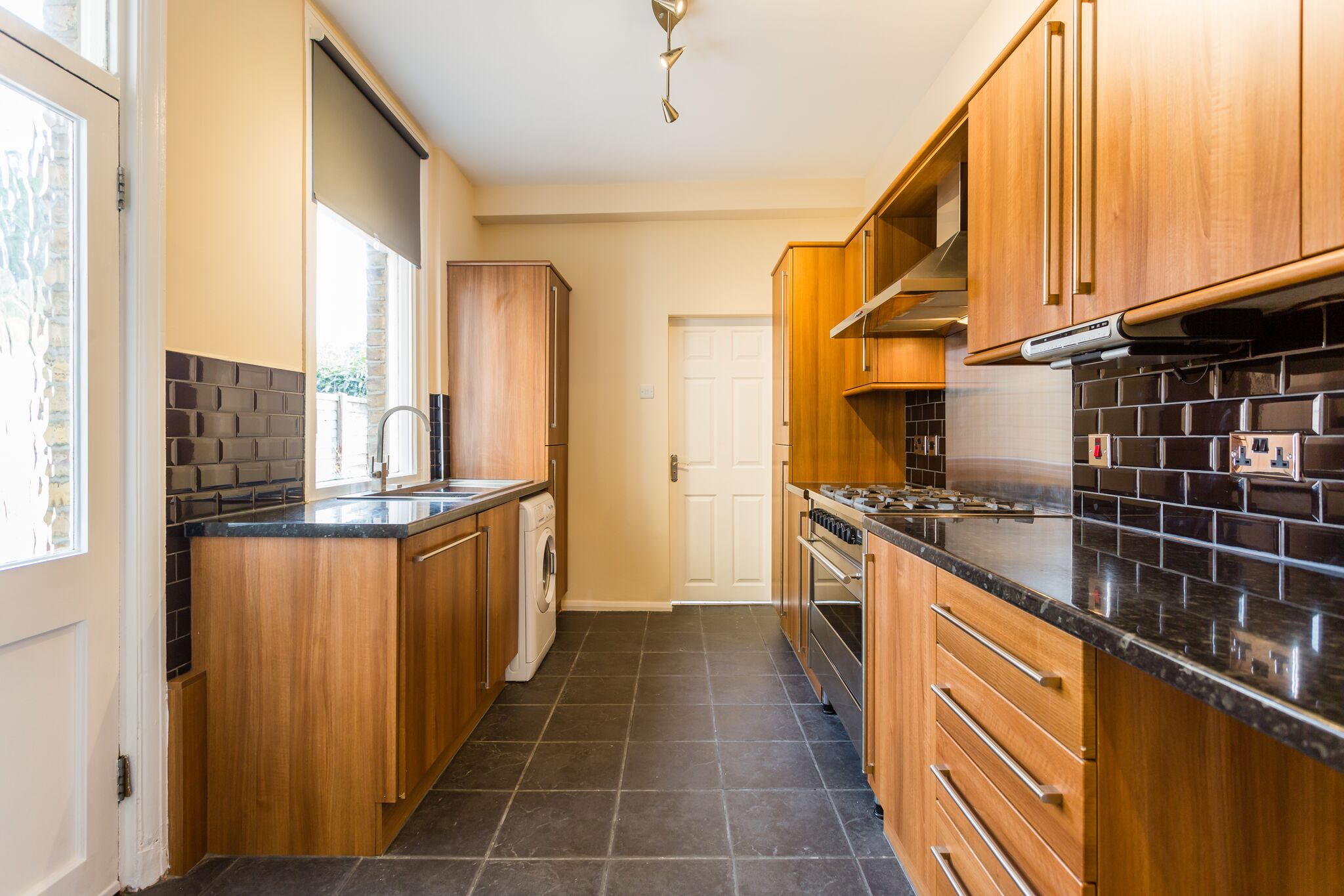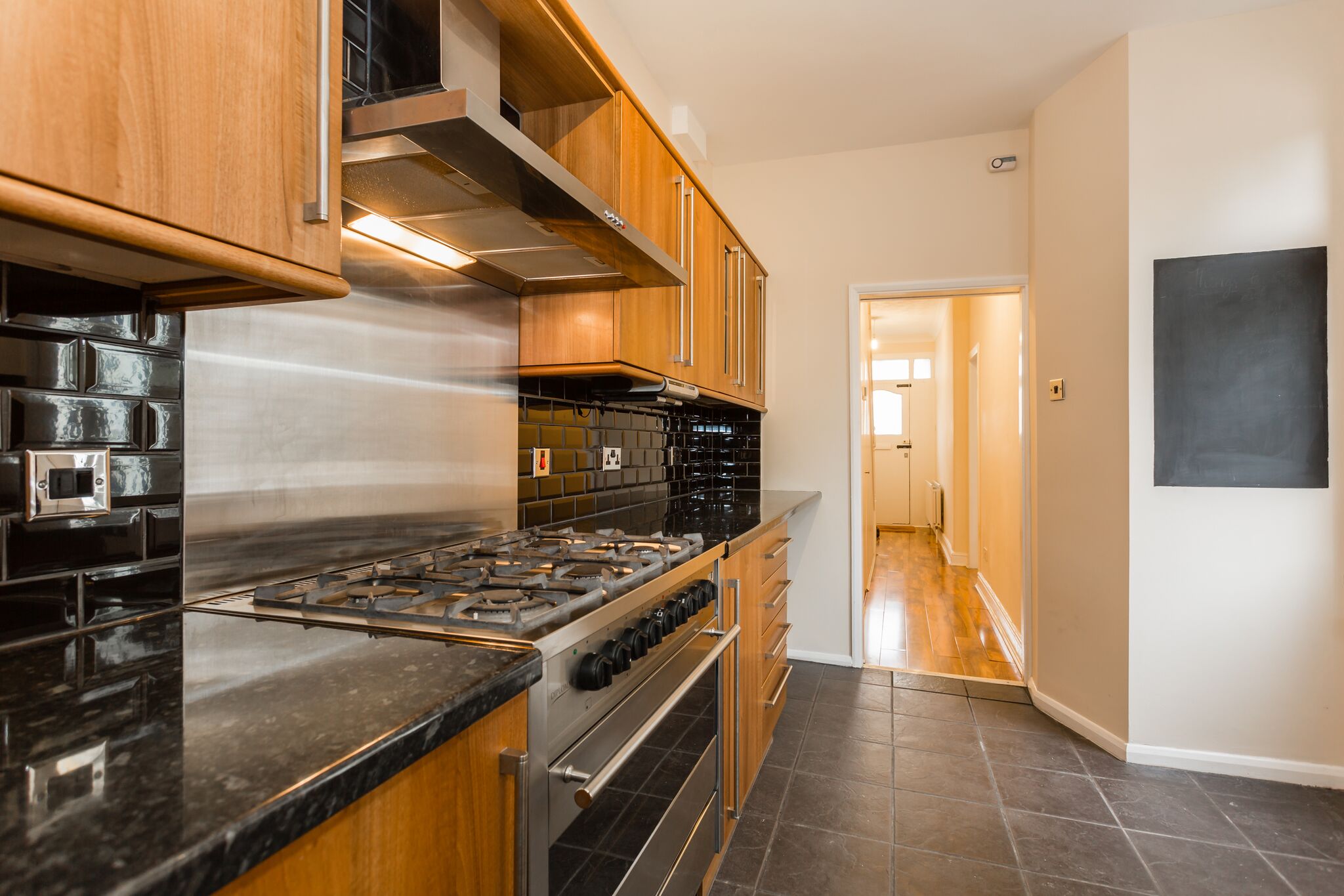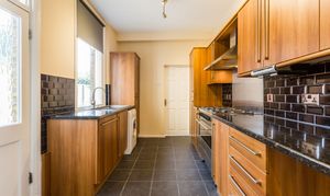 - Spacious kitchen with six-ring gas hob and integrated appliances