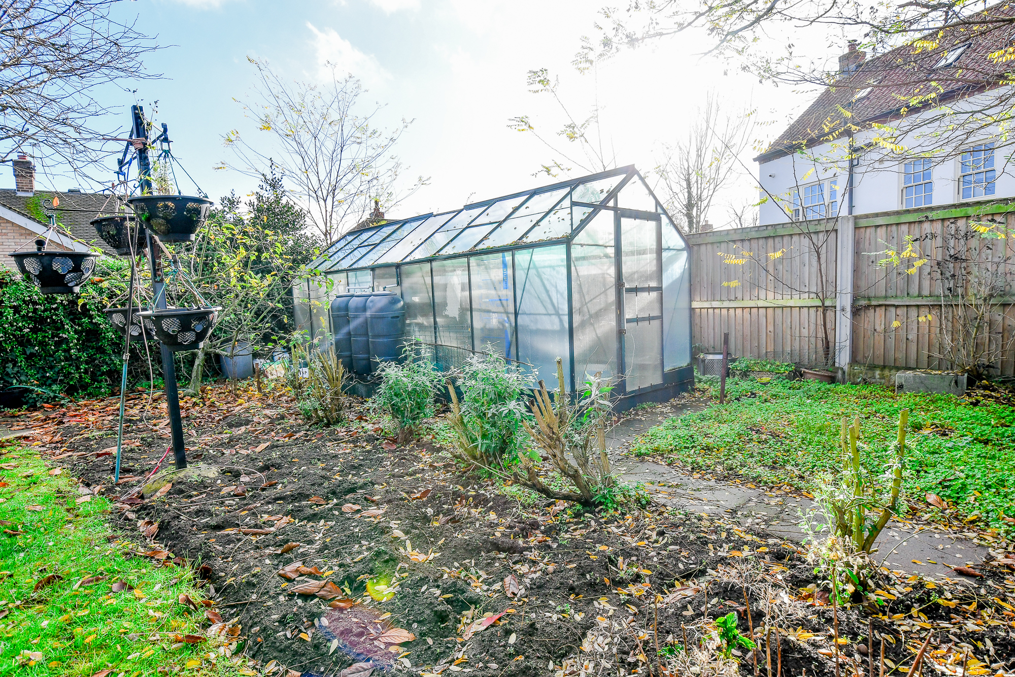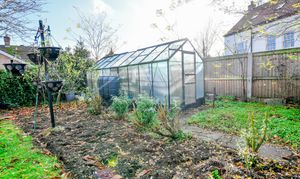 Outside, the home continues to impress with a substantial rear garden, perfect for outdoor gatherings or gardening enthusiasts. A greenhouse sits neatly within the space, providing opportunity for home-grown produce all year round.