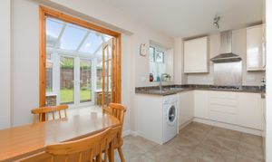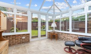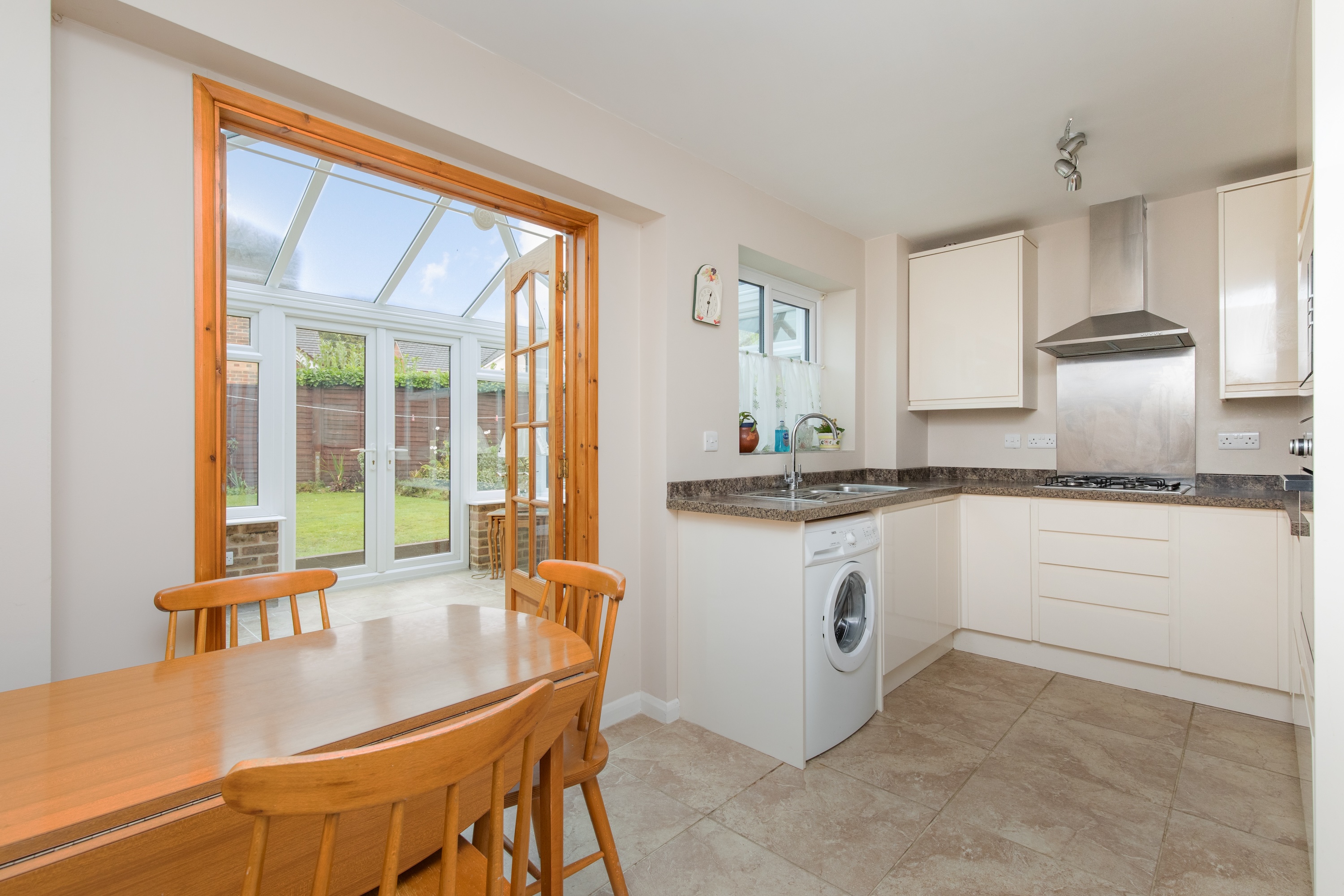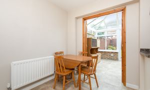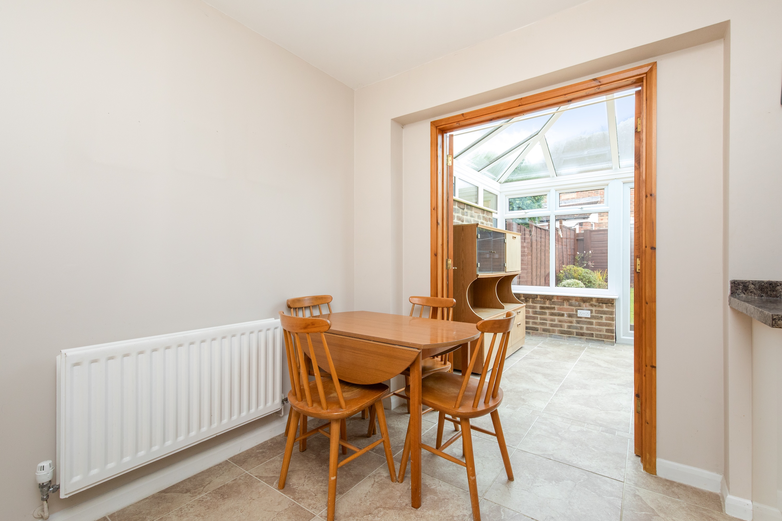 A driveway provides parking for 1 vehicle, leading to the garage with power and eaves storage. There is an opportunity to create an additional reception room with a garage conversion and a larger driveway, if required. The 33’ X 25’ rear garden is lawned with well stocked borders and paved patio.