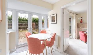 The ground floor accommodation is centred around a bright and welcoming living room positioned to the rear of the property, providing an excellent space for relaxation and entertaining, with doors opening out to the garden. To the front, the kitchen/breakfast room offers a practical and sociable layout, complemented by a separate dining room which provides flexibility for family meals or more formal entertaining. A utility room sits conveniently off the kitchen, alongside an entrance hall, porch, and ground floor WC, completing the well-balanced ground floor arrangement.