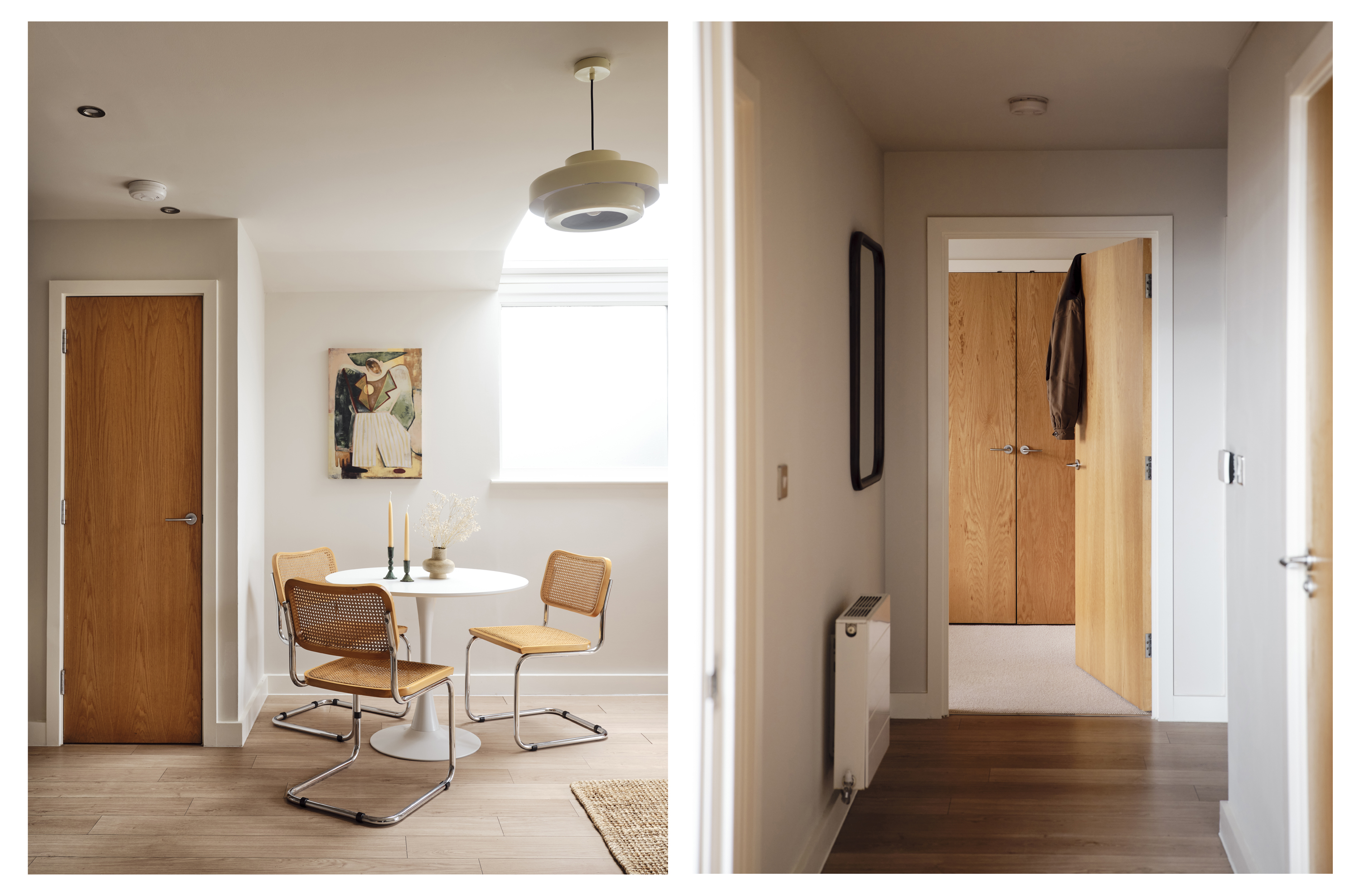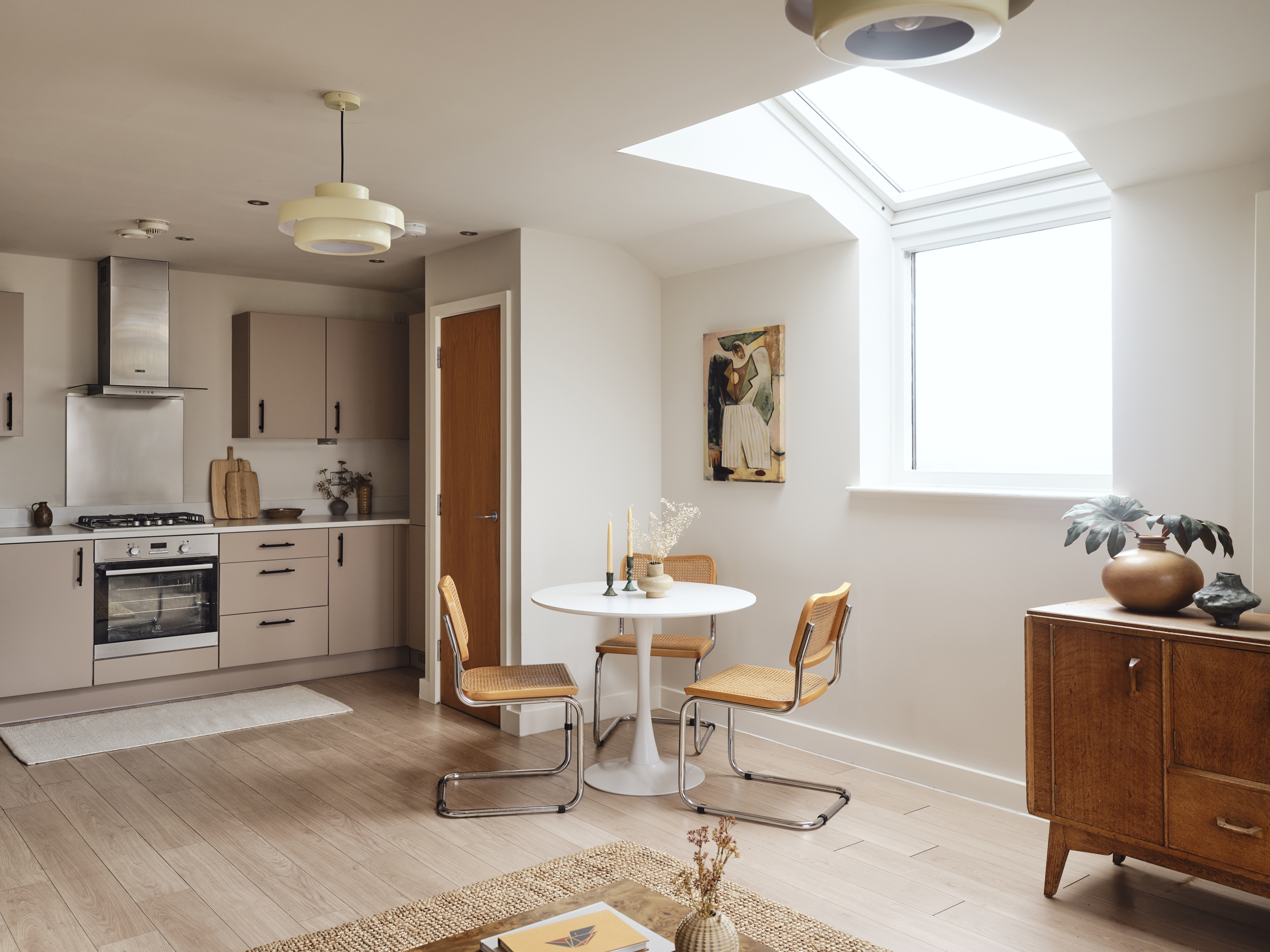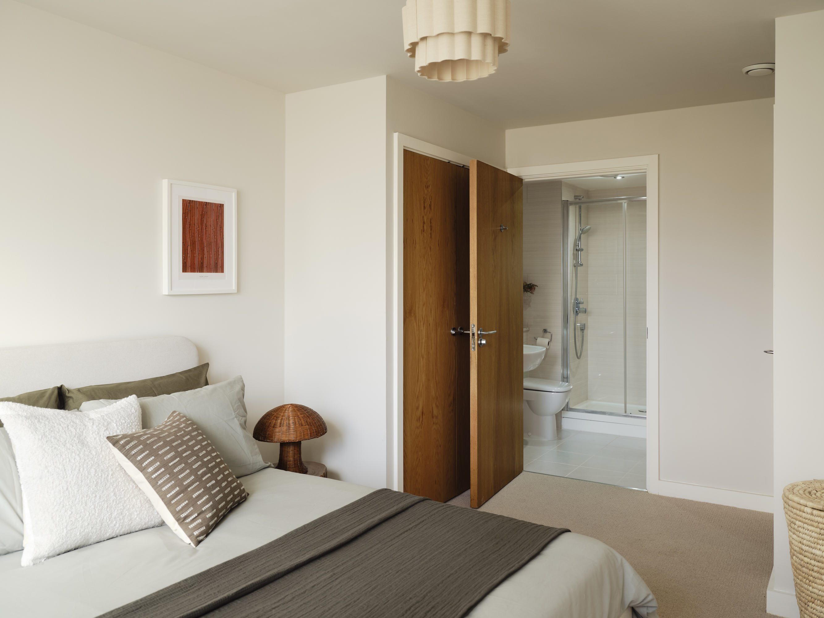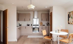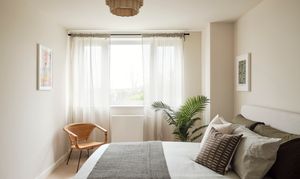 Built in 2010, Cipher Court tips its hat to Dollis Hill’s code-breaking past, standing on ground steeped in wartime ingenuity. Inside, this purpose-built two-bedroom flat is all calm neutrals and graceful simplicity, the sort of space that encourages you to exhale the minute you step through the door.